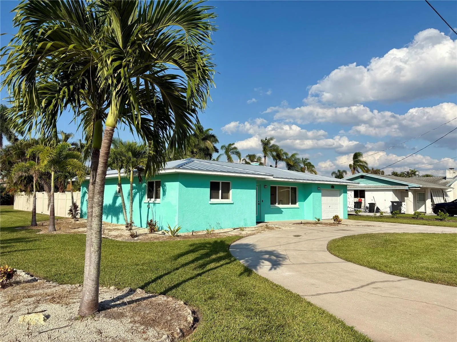 For Rent! Unfurnished Annual Rental! Pet Friendly! Welcome to this bright and stylishly updated 2-bedroom, 2-bathroom home in a quiet Snead Island neighborhood just minutes from shopping, parks, and the Manatee River! Blending modern comfort with Florida character, this home features an open floor plan, designer finishes, and a spacious outdoor living area perfect for relaxing or entertaining. Step inside to a light-filled living area with fresh neutral paint and sleek polished concrete floors throughout. The kitchen is a true standout, featuring custom art-inspired cabinetry, a deep stainless-steel farm sink, modern tile backsplash, and stainless steel appliances. The open layout connects the kitchen to the living space for easy flow and a bright, airy feel. The primary suite offers a large closet and an updated bath with a walk-in tiled shower and contemporary fixtures. The second bathroom features a freestanding soaking tub for a spa-like experience. Both bedrooms are spacious and equipped with ceiling fans for comfort. Step outside to your private fully fenced backyard oasis, complete with lush palms and a covered gazebo patio, perfect for barbecues or evening cocktails. A massive shipping container on-site provides ample storage, making this home as practical as it is beautiful. Washer and dryer included in the home. Lawncare included in rent. Up to 2 dogs allowed with $150 one-time fee/dog.