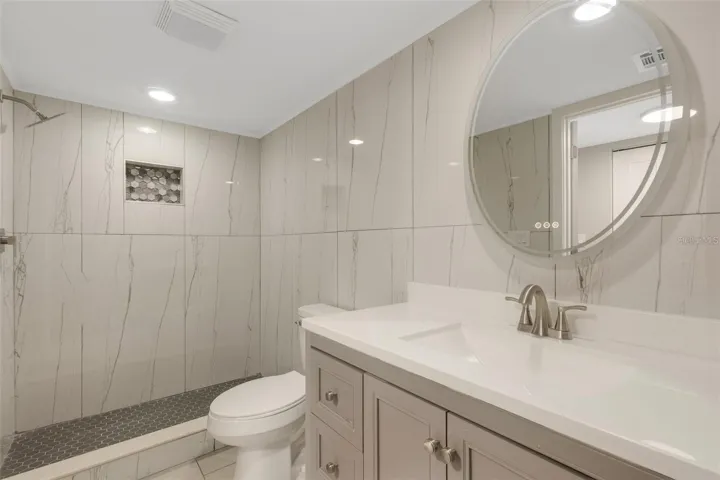 The kitchen has been fully transformed with brand-new cabinetry, sleek countertops, and updated appliances—making meal preparation as enjoyable as it is efficient. Both bathrooms feature elegant walk-in showers and contemporary vanities that combine comfort and style. Additional upgrades include new lighting throughout, ceiling fans to keep things cool on warm Florida evenings, and fresh interior paint that brightens every room.