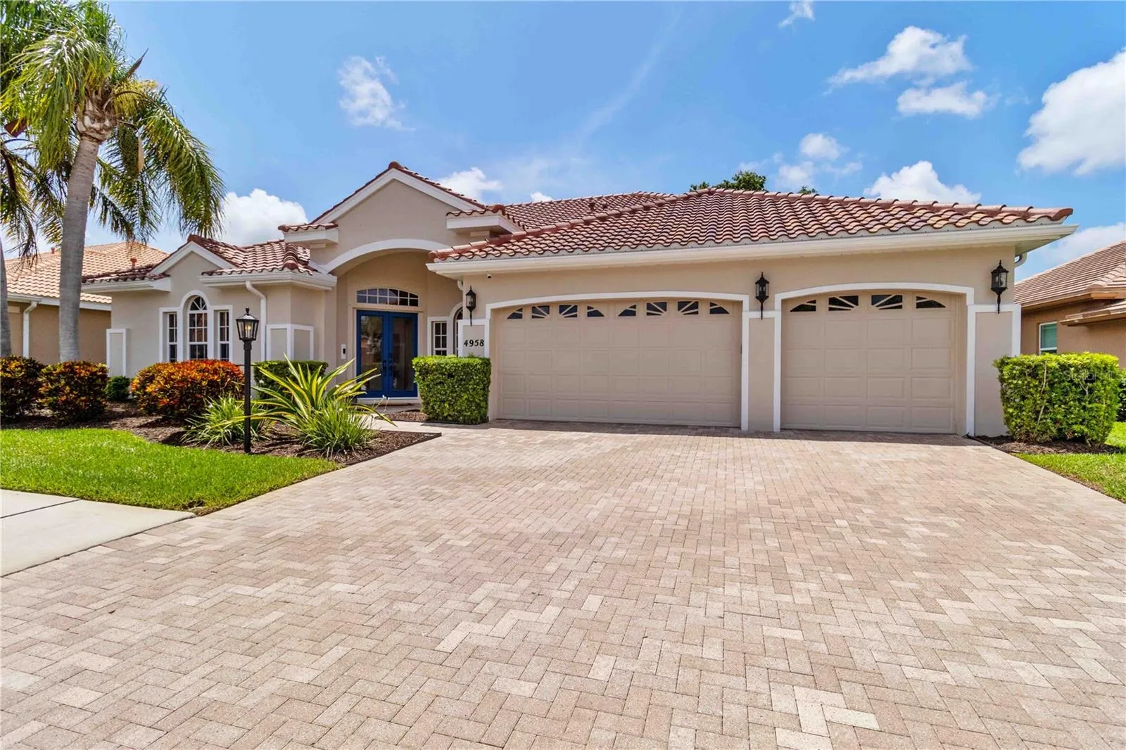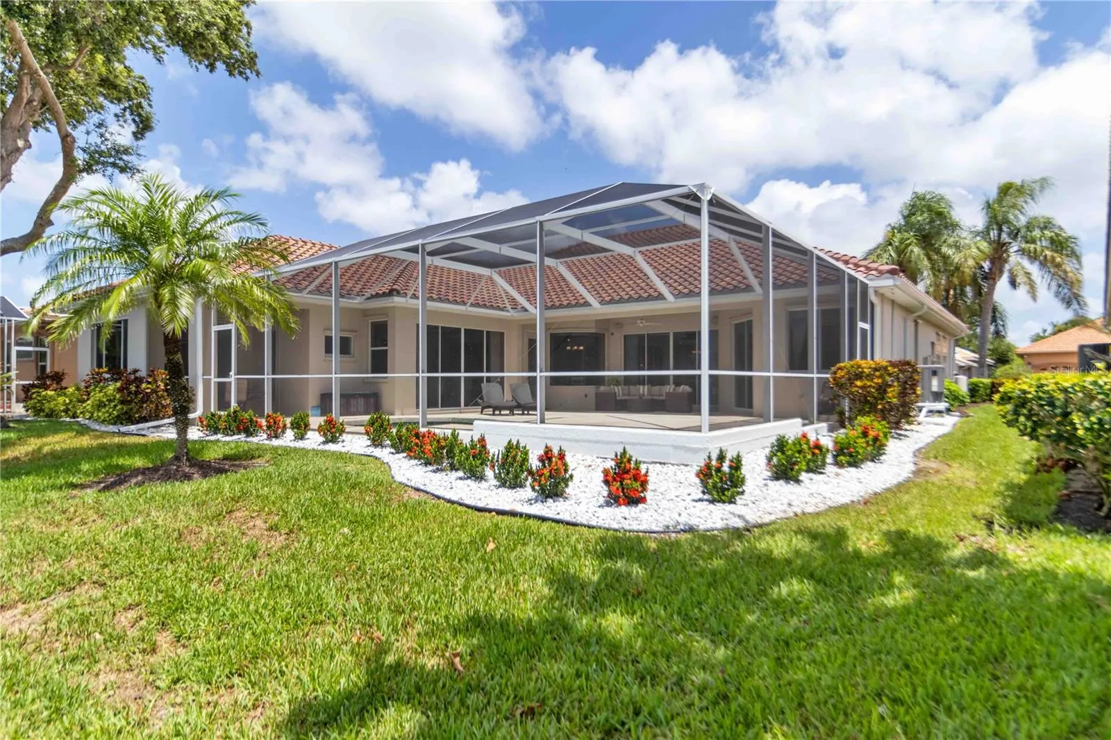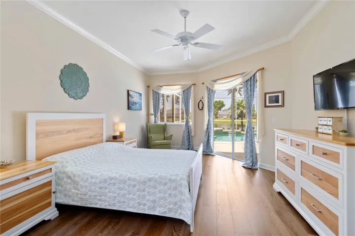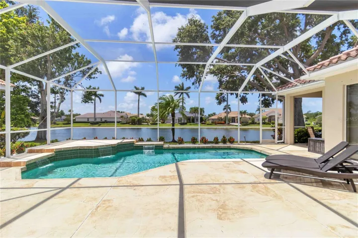 Located in West Hampton on Palmer Ranch. It is a gated community. Located minutes away from Siesta Beach which was voted #1 Beach in USA. Enjoy a beautiful lake view from the back of the home. This home was a very well maintained home. A split plan home with 4 bedrooms, 3 baths, den, heated pool and a 3 car garage. A double 8′ door entry provides views to the lanai, pool and beautiful lake views. French wire brushed professionally installed, glued down wide plank floors in all the living areas. The primary bedroom is on one side of the home and the other bedrooms are on the other side. The primary bathroom is updated with mosaic floor, Italian porcelain tile walls, a walk in shower, a large separate tub to make you feel like you are in a spa, twin vanities and also a dressing table. The primary bedroom has two walk in closets with custom shelving, room for hanging clothes and a luggage rack. The kitchen area has a ding area with an aquarium glass window view of the lanai, pool area and lake. The kitchen and family room area has high vaulted ceilings along with beautiful views of the lanai and lake. there is a correspondence/tech center built in desk that matches the kitchen cabinets. The kitchen cabinets have raised panels. There is also under cabinet lighting in the kitchen, counter tops are rich granite with an undermount sink. The kitchen appliances include a Bosch Convection microwave – oven combo installed in 2024 and a Kitchenaid electric cooktop. The fourth bedroom is large and could be used as a second main bedroom, bonus room /guest suite that is connected to the 3rd bath that has a door out to the pool area. The laundry room area has upper cabinets and a sink. There is a tankless RO water filter installed in 2022, the whole house benefits from a salt free water filter installed in 2022 and a new pool heat pump in 2023. The home has two A/C units. The hot water heater was replaced in 2023. The garage also offers an electric vehicle charging station. Close to shopping, restaurants, Legacy Trail and I75 for easy commuting.