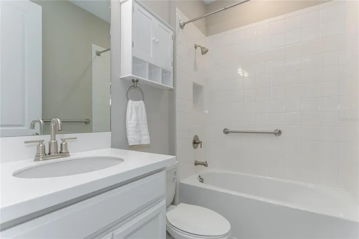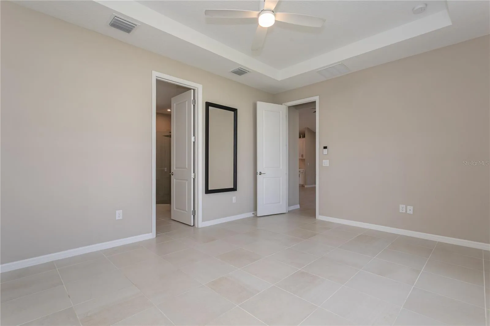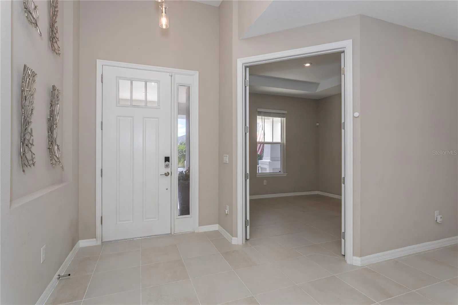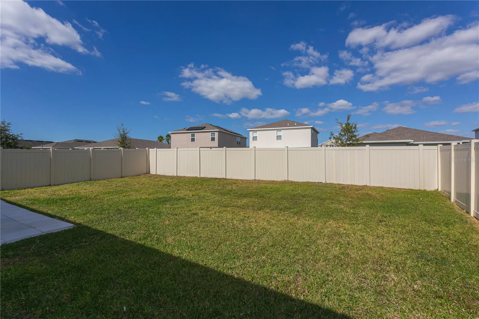 Step inside to find sleek tile flooring throughout and a modern kitchen featuring stainless steel appliances. The open-concept living area flows seamlessly to a screened-in lanai, ideal for relaxing or entertaining, with direct access to a fully fenced backyard.