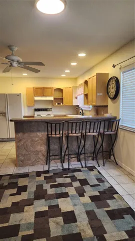 Renovated and ready for occupancy right in the heart of North Port, this home is located in “the Jockey Club” a deed restricted community conveniently located to everything. The interior and exterior of the home has been painted and now the perfect palette for you and your family. The warm paint choice on the interior keeps the home feeling light and will complement any decor. Enjoy the large kitchen with newer appliances, breakfast bar and dining area and this kitchen offers plenty of storage and counter space as well. Ceramic tile flooring in kitchen and luxury vinyl flooring recently installed in living room and 3 of the bedrooms. 4th bedroom offers wall to wall carpet. The primary suite is spacious and can accommodate a king sized bed and has access to back yard. Both the Primary bathroom and guest bathroom have been remodeled and beautiful floor to ceiling tile in the shower and new vanity. Enjoy the convenience of the fenced in back yard and patio area. Off the dining area is a bonus room/4th bedroom which could alternatively be well suited for an office, playroom, workout space, or a den with access to the backyard. North Port is growing in leaps and bounds and is a great community to raise your family. You certainly will not be at a loss for things to do. There is a community pool is available to tenants and there are 2 pet parks nearby as well as shops, grocery and restaurants!