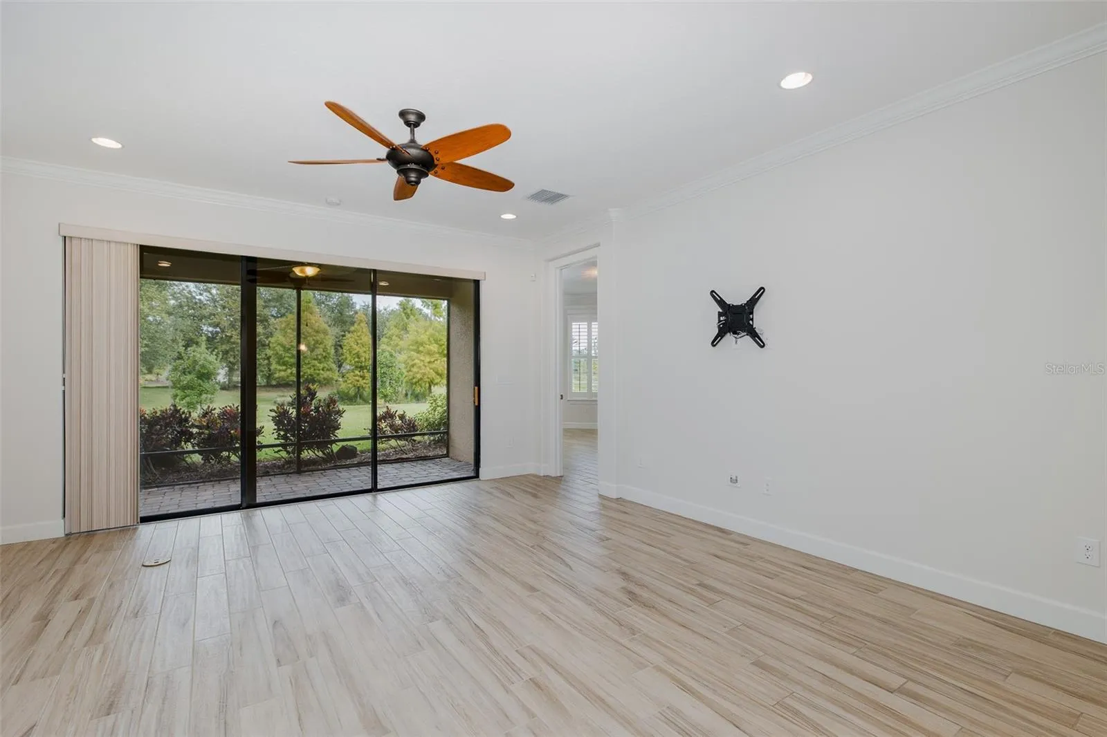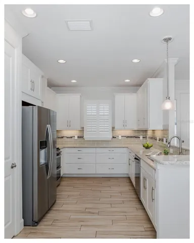Low Maintenance Living at its BEST in this ESPLANADE home perfectly situated on PRIVATE WATERFRONT LOT! This fabulous home boasts 2 bedrooms, 2 baths & office/flex space and pavered screened lanai overlooking serene pond & lush landscape. Wood-like tile flooring flow throughout all living spaces & rich crown molding throughout accents this fabulous home. The living room features lovely tile flooring, rich crown molding & sliders that lead you to the private lanai. The kitchen is a chef’s delight & boasts rich wood cabinetry, quartz counters, stainless steel appliances (including a double oven) & custom back-splash. The owner’s suite is spacious and offers beautiful views of the private pond & lush landscape. The en suite bath is pampering with double vanities, large walk-in shower & custom closet complete with organizers. The guest bedroom is spacious with custom organized closet & guest bath offers vanity & tub/shower. The den or flex space is the perfect office space. This lovingly cared for home has many upgrades: FRESHLY PAINTED NEUTRAL INTERIOR, 8 foot doors throughout, custom window shutters with rich molding throughout, crown molding throughout, custom closets throughout, GENERAC whole house GENERATOR, tile roof recently soft washed & so much more! Gated Esplanade community offers light maintenance living (which includes, lawn maintenance, irrigation & trash) residents also enjoy resort-style amenities, concierge service, fitness center & classes, an activities director, resort style pool, resistance pool, tennis, pickle ball, dog park, shuffleboard, trails, dog park & parks. Conveniently located within the sought-after award-winning neighborhood of Starkey Ranch with 22 miles of trails, nature abounds with 800 acres of conservation near the 18,000 acre JB Starkey Wilderness Preserve, restaurants, shops, parks, beaches, and Tampa International Airport, this home offers luxury living and unrivaled convenience. Don’t miss out on the opportunity to make this exquisite property yours! This amazing home is move-in ready & can accommodate a QUICK CLOSE! UNBELIEVABLE Esplanade VALUE with INCREDIBLE VIEWS!!