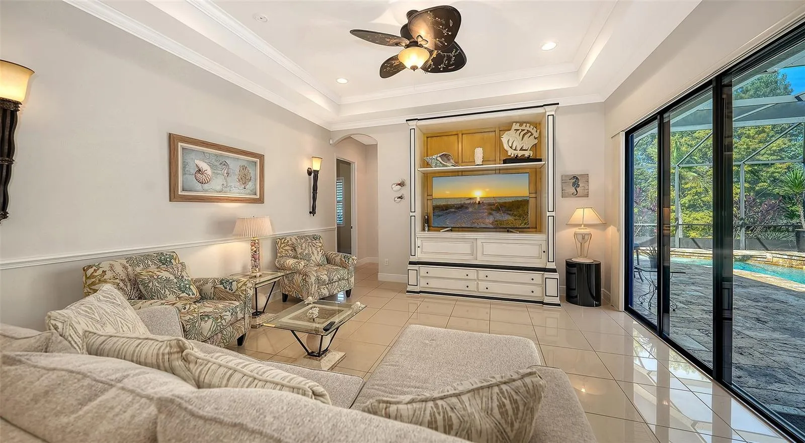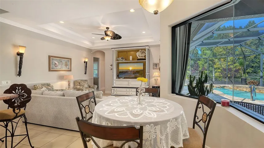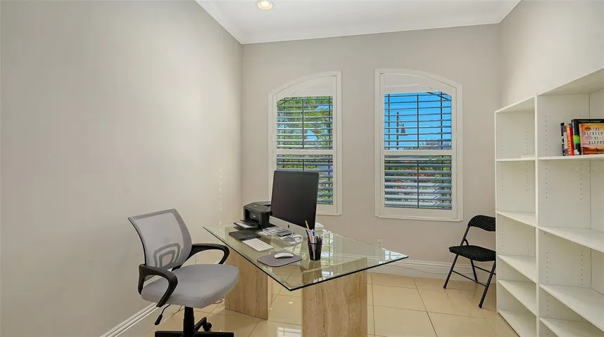 Gorgeous and immaculate 4 Bedroom (plus office) 3 Bath Pool home, offering beautiful pond views, as well as privacy from neighboring homes. Situated on a cul-de-sac in the highly desirable University Park community of Riva Trace, this 2400 Sq ft. well-appointed resort style home, will hit every mark on your wish-list. Step inside and be greeted by coffered ceilings, crown molding, plantation shutters, and views from several rooms of the saltwater pool. The open-concept kitchen and great room are perfect for entertaining, and features a four-burner gas cooktop, wall oven, breakfast bar, butler’s pantry, granite countertops, and 42” soft-close hardwood cabinetry with backlighting. The primary suite is a true retreat with custom built-ins in the walk-in closet, and a spa-inspired bath with granite counters, dual sinks, solid wood cabinets, as well as a walk-in shower. A pocket door separates the second and third bedrooms with their own full bath—ideal for guest privacy. The fourth bedroom enjoys serene pond views and easy access to the pool and third bath. Work from home in style, in the French-door-enclosed office. Then relax or entertain in the screened outdoor oasis, complete with a summer kitchen, bar, travertine pavers, and a covered lanai. Additional highlights include a newer A/C system, well-maintained paver driveway and entry path. There low, stable HOA fees, and no CDD’s. Riva Trace also offers homeowners a neighborhood kayak launch on the beautiful Braden River. This special home is located just five minutes from the UTC Mall, with the brand new Mote Aquarium. You will be just 12 short minutes to Sarasota Airport and 20 minutes to Florida’s cultural gem- downtown Sarasota. Concerts at the Van Wezel, ballet and theatre at The Asolo Repertory Theatre, Sarasota Opera house, and Florida Studio Theatre… all beckoning you. It’s a short hop to Lakewood Ranch’s new downtown district, Waterside. World-class beaches like Siesta Key, Lido Key, Longboat Key, and Anna Maria Island are all easy to reach. Flexible for showings. Come experience the Gulf Coast lifestyle at its very best!