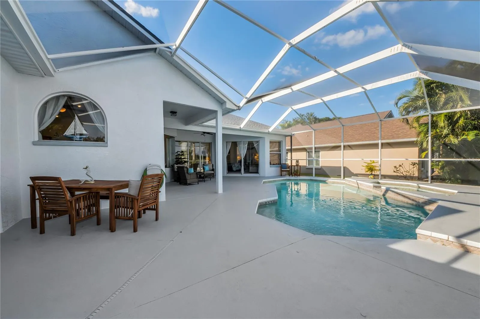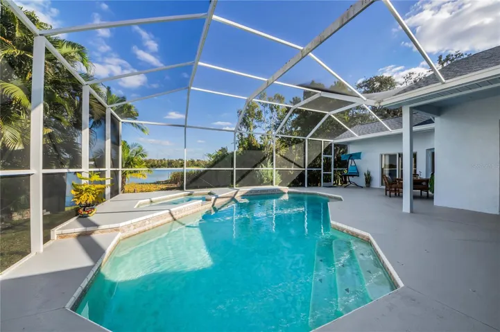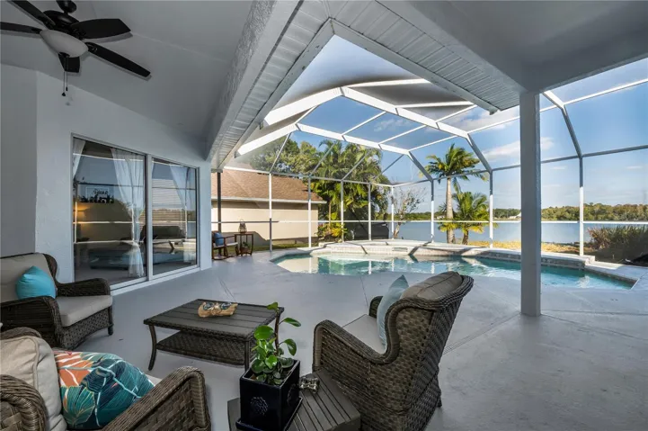 Waterfront Living Awaits! NO FLOOD INSURANCE NEEDED! This beautiful, affordably priced waterfront home is a gem you won’t want to miss! With 4 spacious bedrooms and 3 full baths, this home features a 3-car garage equipped with 10 ft high ceilings and 8ft doors, for the man that loves his truck and lots of space.Experience peace of mind with a 3-year-old roof, a 5-year-old water heater, and an 8-year-old A/C unit. Enjoy stunning, tranquil views of Salt Lake and the adjacent nature preserve from the expansive screened in lanai, where you can relax in the pool/spa combination. This outdoor oasis offers ample space for your dream outdoor kitchen you always wanted! Located in the desirable North Lake of Tarpon Springs gated community, this home boasts stunning tropical landscaping and comes with a whole-house warranty and a solar attic fan for added energy efficiency. The open floor plan provides plenty of room for entertaining and family living.Take advantage of breathtaking views of the lake and wildlife, including deer and exotic birds, right from your backyard. With quick and easy access to the salt lake fishing pier and the scenic Pinellas Trail that runs the border around this little quaint private neighborhood. Outdoor enthusiasts will feel right at home. Plus, you’re just a short drive away from beautiful beaches, amazing restaurants, shopping, entertainment, and the Historic Sponge Docks. Easy access to both Tampa and St. Pete airports completes this perfect package! Don’t wait—this home is priced to sell .
