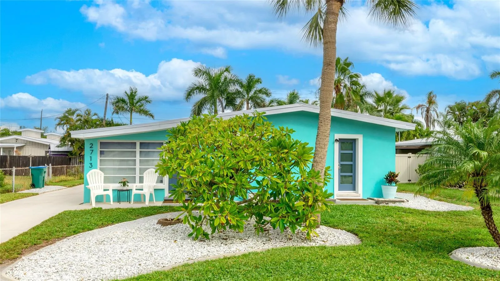 CUSTOM QUALITY HOME REMODEL: Welcome to Turquoise Beach Bungalow—your perfect slice of island life. Completely reimagined inside and out in 2024–2025, this vibrant coastal retreat combines classic island charm with modern comfort and craftsmanship. Every detail has been thoughtfully considered, from the new seamless metal roof and fresh stucco exterior to the all-new appliances, three new AC units, and a tankless water heater.