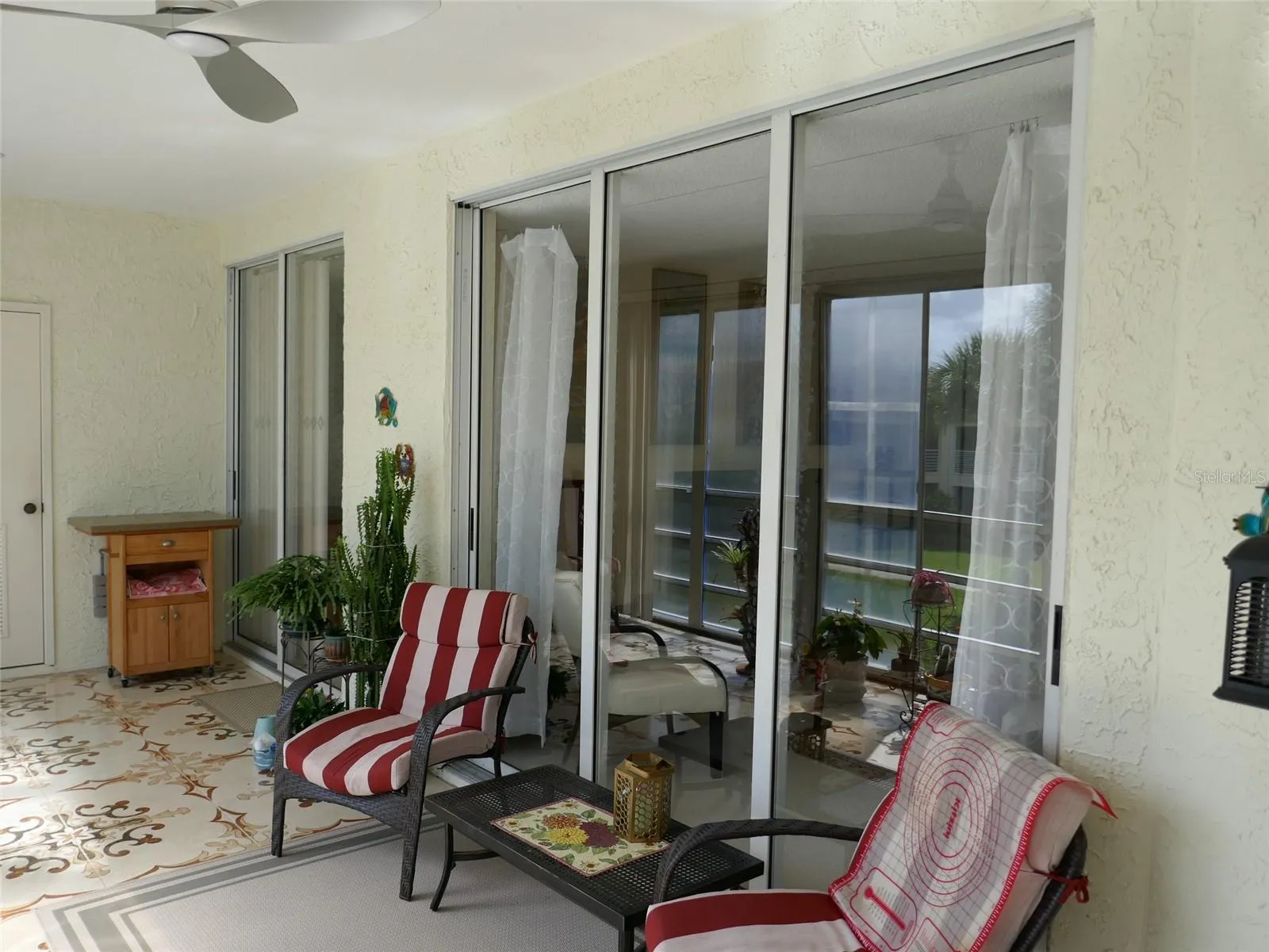 Beautifully maintained 2 Bedroom, 2 Bathroom Condo in Vizcaya! Seller Motivated — Bring Offers! This elegant second-floor end unit in the Mediterranean-style Vizcaya community offers the perfect blend of comfort, style, and resort living. Featuring a split-bedroom floor plan, this bright and spacious home provides both privacy and flexibility—ideal for hosting guests or creating a home office. The large master suite includes two walk-in closets and a private bath, while the guest bedroom and bath are thoughtfully positioned for added privacy. The spacious living room, combined with a dining room, opens to an extra-large screened lanai with beautiful decorative tile flooring and extra storage, perfect for relaxing or entertaining. The specially designed kitchen features GRANITE COUNTERTOPS, UPDATED NATURAL WOOD CABINETRY AND PANTRY, UPDATED BRUSHED NICKEL FAUCET, and NEWER APPLIANCES (UPDATED 2019–2022). A NEW MISTSUBISHI DUAL SPLIT A/C SYSTEM (INSTALLED 2024 WITH 12-YEAR TRANSFERRABLE WARRANTY) ensures energy efficiency and year-round comfort. The building also features HURRICANE-RATED TILE ROOFING for peace of mind.