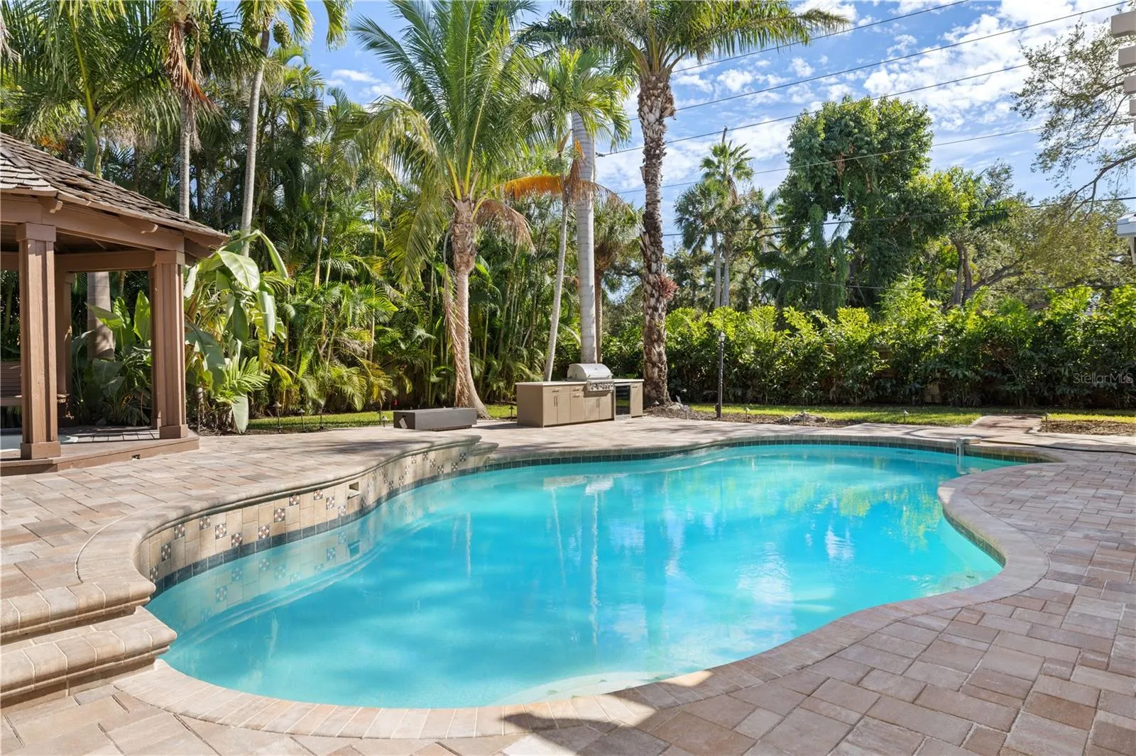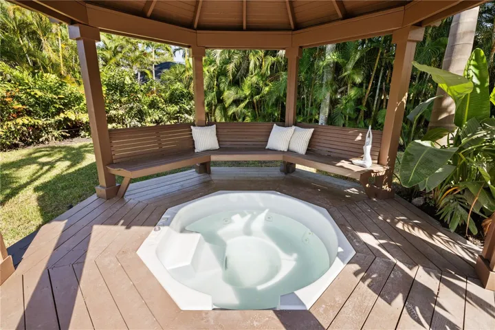 The expansive 0.32 acre lot is built for entertaining: a covered lanai with spacious patio, inviting pool, charming gazebo with hot tub, brand-new outdoor kitchen, and a second bar with covered awning. Recent upgrades include updated landscaping with new irrigation system, a dog run, custom exterior lighting package, and a cozy fire pit—perfect for evening gatherings. There’s plenty of room for family and guests to relax and enjoy.