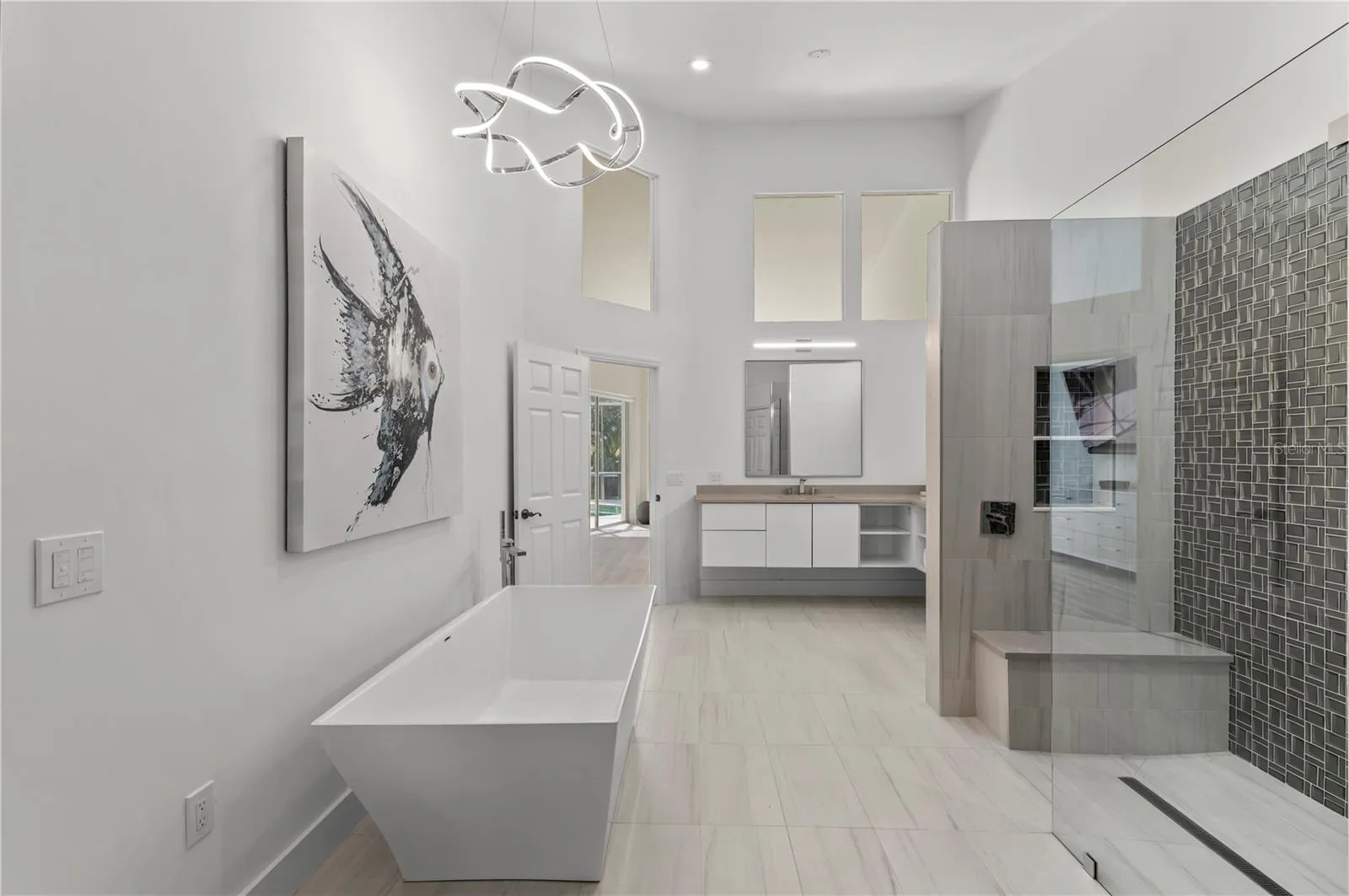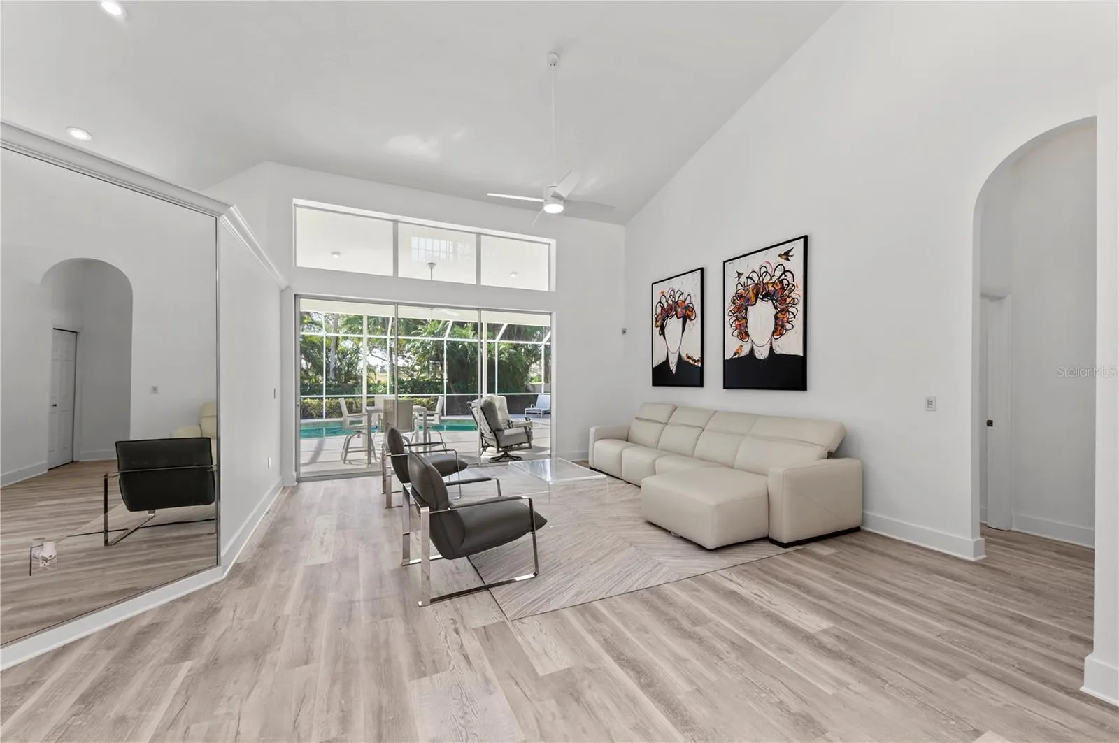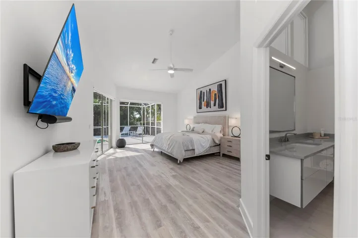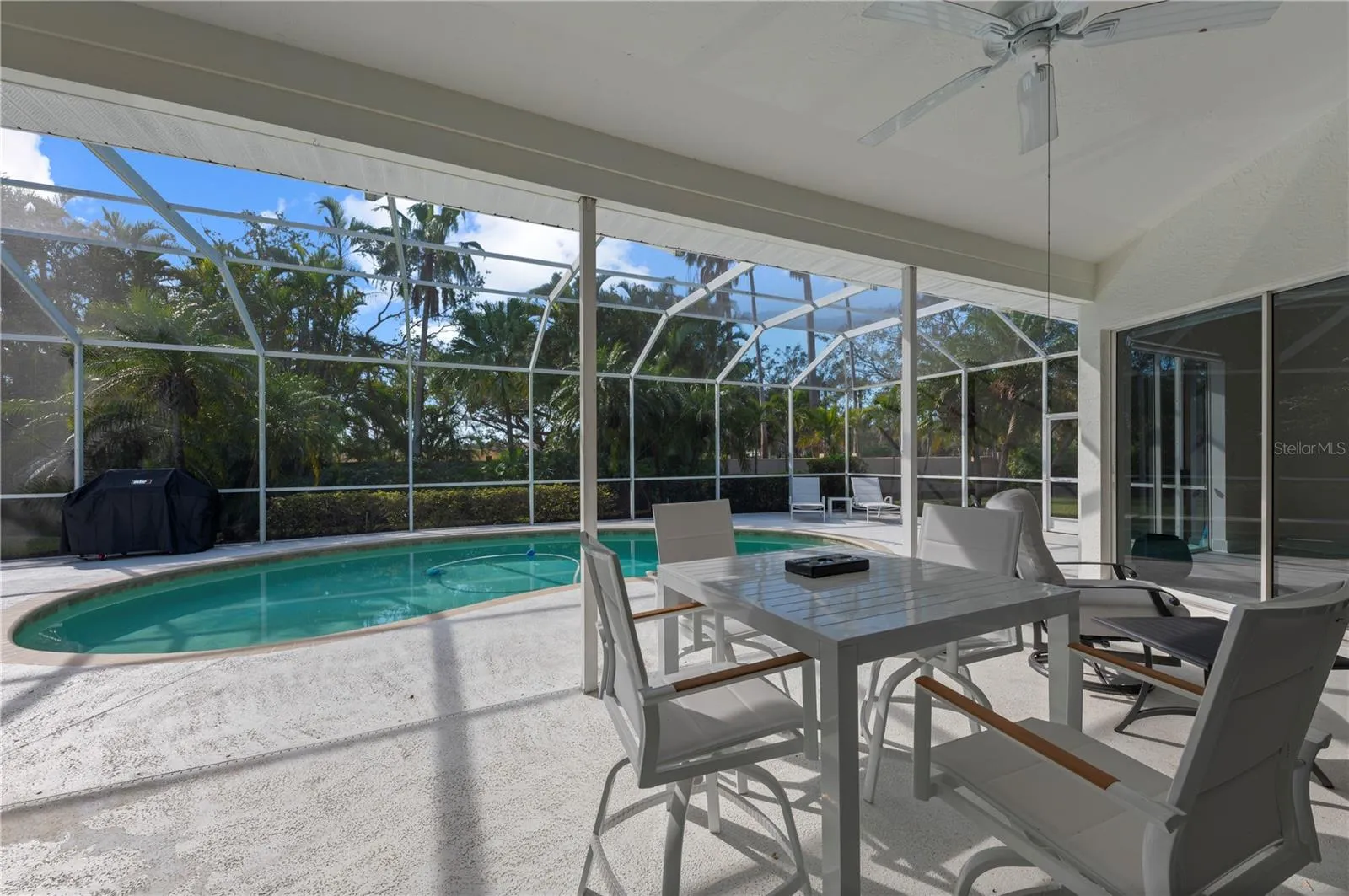 Welcome to 4214 Palacio Drive, an exquisite pool residence nestled within the exclusive TPC Prestancia golf community in Sarasota, Florida. This distinguished home offers a harmonious blend of luxury, comfort, and premier golf course living. Property Highlights: Spacious Layout: Encompassing 2,873 square feet of updates, this home features 4 generously sized bedrooms and 3.5 elegantly appointed bathrooms, providing ample space for family and guests. Elegant Design: Recently updated, the residence boasts a classic elevation with a side-entry 3-car garage. The double-door entry welcomes you into light-filled rooms accentuated by high ceilings and transom windows, creating an airy and inviting atmosphere. Outdoor Oasis: The property is situated on a meticulously maintained 0.48-acre lot, offering lush lawns and mature landscaping while enjoying your expansive lanai and pool area. The southern rear exposure ensures abundant natural light throughout the day. Recent updates include: Freshly sealed driveway. Fresh paint, baseboards, and flooring throughout the home. The primary bathroom suite and guest bathroom have been remodeled to encompass clean lines with quartz countertops, and ample storage in closet organizers and vanities. The walk in shower and tub is like walking into a spa with its high ceilings, clean lines, and secluded setting in the primary suite. The 4th bedroom can be a guest bedroom, office, or family bonus room with a door that enters the primary suite as well as door from main living area. Electric blinds on the main windows. Roof was completed in 2021. Community Features: TPC Prestancia: As a resident, you’ll enjoy optional membership access to 36 holes of world-class golf, including the renowned Stadium and Players courses. The community spans 565 acres of lush landscapes, providing a balance of aesthetic beauty and championship play. Clubhouse Amenities: Again with optional membership…The recently renovated 35,000 square-foot clubhouse offers a full-service experience, including casual indoor and outdoor dining with gourmet menus, a variety of social activities and events, and world-class golf facilities and instruction. Prime Location: Located within the Palmer Ranch area, TPC Prestancia is just minutes from the white sands of Siesta Key and provides easy access to the arts and culture of downtown Sarasota. Experience Florida living where luxury meets leisure in a serene golf course setting. Recent updates include: Freshly sealed driveway. Fresh paint, baseboards, and flooring throughout the home. The primary bathroom suite and guest bathroom have been remodeled to encompass clean lines with quartz countertops, and ample storage in closet organizers and vanities. The walk in shower and tub is like walking into a spa with its high ceilings, clean lines, and secluded setting in the primary suite. The 4th bedroom can be a guest bedroom, office, or family bonus room with a door that enters the primary suite as well as door from main living area.