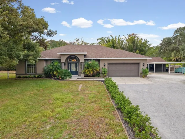One or more photo(s) has been virtually staged. PRICE REDUCTION! Welcome to Hidden Lake Estates, an exclusive aviation community where upscale living meets private runway access. 8551 Pratt Dr. is a spacious and thoughtfully designed single-family home built in 2000, offering approximately 2,256 sq ft of living space on a 1.15 beautifully landscaped acre lot. This home offers a perfect blend of comfort, elegance, and the aviation lifestyle. Inside you’ll find 4 bedrooms and 3 full baths, providing excellent flexibility for families, guests, or a home office setup. The main living areas feature an open floor plan boasting plenty of natural light. Soaring ceilings and detailed tray ceilings add a sense of grandeur, while the open floor plan allows for effortless flow throughout the living spaces. The inviting living room centers a custom built-in media cabinets creating a warm and welcoming atmosphere. The expansive primary suite includes a walk-in closet and a spa-like bathroom complete with a separate garden tub and walk-in shower. High ceilings and thoughtful finishes continue throughout the home, enhancing the sense of space and light. Step outside to enjoy the screened-in outdoor kitchen and pool—your private oasis for year-round enjoyment. Entertain around the backyard fire pit or unwind in the secluded wading pool. A separate enclosed gated area provides ample space for your four-legged family members to run and play outside. While the detached garage and workshop gives ample room for work or hobbies plus an attached carport. This property backs up to Southwest Florida Water Management Company property. The district owns and manages lands around lakes, rivers, and wetlands to act as natural buffers that filter pollution and preserve native ecosystems. This beautiful lot offers opportunities for gardening, outdoor recreation, and expansion — a rare find in the New Port Richey area. Short-term leasing allowed with no wait time. As part of Hidden Lake Estates, homeowners have access to Hidden Lake Airport (FA40), a private airport featuring a 4,450-foot-long, 50-foot-wide paved runway. Whether you’re an aviator or simply appreciate the unique lifestyle, this community offers a rare opportunity to live among fellow enthusiasts in a peaceful, gated setting. Come experience the best of Florida fly-in living—schedule your private showing today