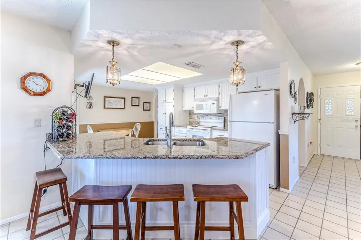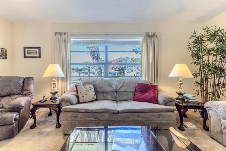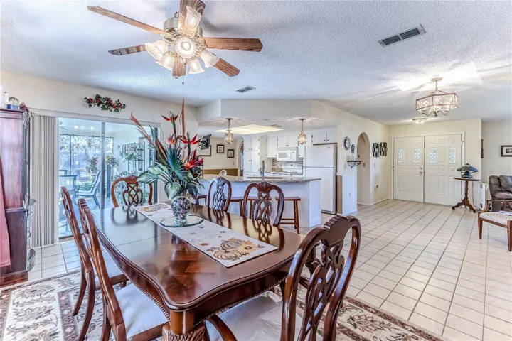 Set on a generous lot shaded by a stately palm, this inviting 3-bedroom, 2-bathroom home perfectly balances classic Florida charm with thoughtful updates. Step through the double-door entry into a wide foyer that opens to a sunken formal living room—a timeless design element that gives this home a sense of depth and personality. The updated kitchen features granite countertops, rich wood cabinetry, a double sink, and a closet pantry, offering both style and function for everyday living. A spacious formal dining room sits just off the kitchen, ideal for gathering with family or hosting friends. The primary suite offers a peaceful retreat with a large cedar-lined walk-in closet, a ceiling fan, and a private en suite bathroom with shower. The additional bedrooms are nicely sized—one with dual closets, another with a single oversized closet—and share a full guest bath with a makeup vanity and tub/shower combo. Step outside, and you’ll find the heart of this home: an expansive screened lanai with tile flooring, perfect for morning coffee or evening relaxation while you take in tranquil views of trees and visiting birds. Beyond that, a second screened area, open to the sky, offers space for sunbathing, grilling, or stargazing. The two-car garage includes a washer, dryer, and utility sink, and there’s plenty of storage throughout the home, including a convenient hall closet. Roof 2022. HVAC 2009. NO HOA, so bring you boat and RV. Peaceful and well cared for—this home has a warmth that welcomes you the moment you walk in.