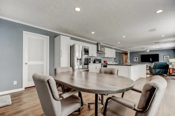 The chef’s kitchen is a dream…complete with stainless steel appliances, ample cabinets, a kitchen island that seats 4-6 guests, is ideal for entertaining.