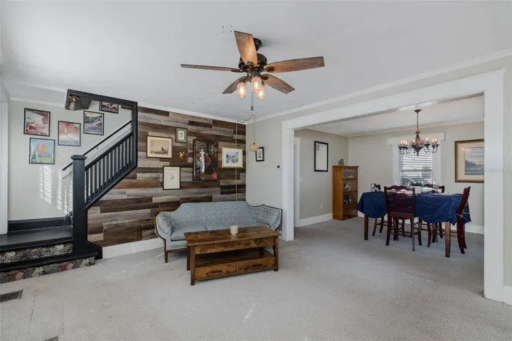 Step into the timeless magic of this 1920’s Craftsman Bungalow, nestled in the vibrant heart of Tampa, where historic charm blends seamlessly with modern comfort. From the moment you arrive, the brick driveway and enchanting front porch—complete with the quintessential swing—set the tone for a home filled with warmth, character, and undeniable appeal. As you enter through the front door, you’re greeted by an expansive living room bathed in natural light, featuring a classic fireplace and a dreamy bay window with its own cozy sitting area. Every inch of this space whispers history, highlighted by original trim and craftsmanship that simply can’t be replicated today. The living room flows effortlessly into the generous dining room, where sliding doors open out to the front porch, inviting the breeze in and creating the perfect backdrop for unforgettable indoor–outdoor living. The dining room leads into a beautifully updated kitchen that still radiates old-world charm. Here, you’ll find built-in storage, abundant cabinetry, ample counter space, and sleek stainless steel appliances—ideal for both everyday meals and special gatherings. Just off the kitchen, a convenient inside laundry area and a tastefully updated full bathroom add function and flexibility. Continue toward the backyard, where a large, private outdoor space and a storage shed offer endless potential for play, gardening, or future expansion. Make your way up the stunning staircase to the second floor, where craftsmanship shines in every detail. The upper level boasts three generously sized bedrooms, each offering comfort and character. The sun-drenched primary bedroom features multiple windows that fill the space with natural light and includes two spacious closets. The upstairs full bathroom has been thoughtfully updated to impress, showcasing a gorgeous free-standing soaking tub and a separate tiled shower—your personal sanctuary after a long day. Located just moments from Tampa’s best restaurants, entertainment venues, parks, and the Tampa International Airport, this home places you right where you want to be. Aggressively priced for a quick sale, this rare gem is overflowing with charm, history, and possibility. Don’t let this opportunity slip away—contact your real estate professional today for your private viewing!