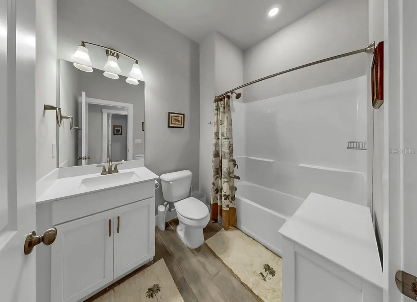 The split floor plan provides both space and privacy. The primary suite, located at the back of the home, serves as a private retreat, while the other three bedrooms and a full bath with a tub/shower combo are located on the opposite side.