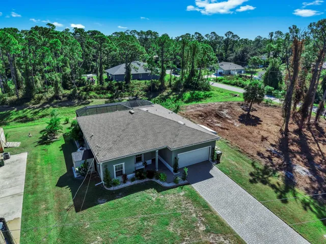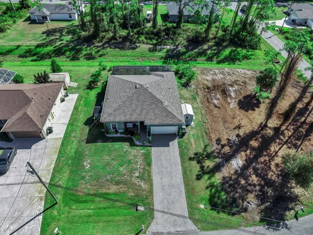 Welcome to this gorgeous home in the heart of North Port! This recently built residence showcases Florida living at its finest, offering 1,707 sq. ft. of thoughtfully designed space with 4 bedrooms, 2 full bathrooms, an energy efficient heat pump for both the HVAC and pool heater, and a 2-car garage. From the moment you arrive, you’ll notice the curb appeal with the paver driveway and walkway, upgraded landscaping with irrigation for plants in front and rear of the house.