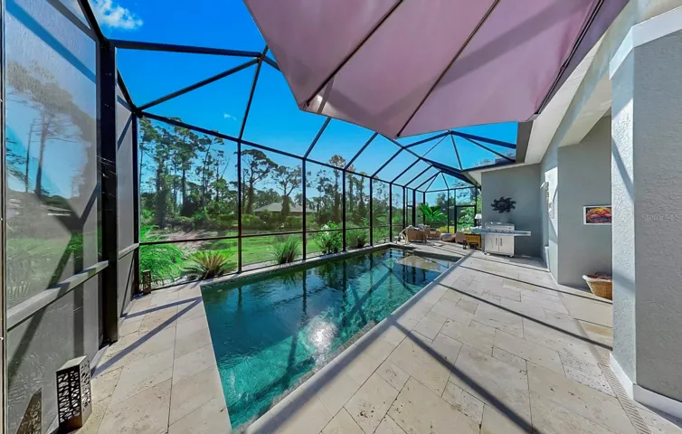 Step through the sliding glass doors off the living room into your backyard oasis where the owners spared no expense with an oversized screened-in lanai, an exquisite heated saltwater pool and plenty of seating areas for movie nights and entertaining. Two outdoor storage sheds provide extra space for tools, hobbies, or a workshop, and there’s even a dedicated generator hookup line already in place!!