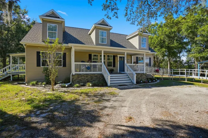 Welcome to your dream farmhouse retreat — a slice of country paradise on 5 sprawling acres! This beautifully maintained property offers the perfect blend of rustic charm and modern convenience. Enjoy peaceful mornings overlooking your own portion of a tranquil lake, or spend your days tending to the horses in the two corrals and stables just steps from home. The stables include a tack room, 4 stalls total, 3 of the stables have their own runs for the horses. The property is fully fenced and gated, and pulling in makes you feel like you are on a farm or out in the country. The large covered front porch is perfect for morning coffee and easy weekends. Walking inside you’ll notice the open concept, high ceilings and beautiful kitchen. The fixtures throughout have been upgraded and both upstairs and downstairs are split floorplans. The primary bedroom has a large walk-in closet with built ins in the closet and an ensuite bathroom with a soaker tub. The main floor does have it’s own AC unit as well. The property is fully equipped for a true country lifestyle — featuring a chicken coop, a charming she shed (or man cave) with a full bathroom, and a 30×40 ft garage with two bay doors, its own electrical panel, and upgraded epoxy concrete floors — ideal for hobbies, storage, or even running a small business from home. Inside, the upstairs area offers two spacious bedrooms, a full bathroom, and a large flex space that could easily serve as its own living room, all comfortably managed by a 3-zone AC system. The home’s upgrades continue throughout: a new well pump with water filtration system, upgraded pool pump and chlorinator, and beautifully refreshed stonework. The front porch stairs have been redone with durable Polywood materials — no more worrying about wood rot, just years of easy upkeep and timeless curb appeal. This property has 2 additional storage sheds, a chicken coop, and plentyof space to park a boat or RV. Whether you’re relaxing under the gazebo, working in the shop, or enjoying a dip in the sparkling pool, this property offers endless possibilities for country living with every modern comfort already in place.