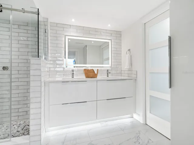 Experience the ultimate in Siesta Key beachfront living. Directly on world-renowned Siesta Beach, rated #1 in the U.S. and #4 worldwide by TripAdvisor, this stunning fifth-floor corner residence captures the essence of luxury coastal living. Recently renovated to perfection, this one-bedroom, 1.5-bath condominium offers a rare combination of modern sophistication, coastal elegance and sweeping Gulf views. Designed by the acclaimed architect Frank Folsom Smith, the iconic Beach Terrace building is an architectural gem. This residence is a standout, meticulously renovated by a designer whose impeccable taste and attention to detail elevate the home well beyond expectation, with a focus on efficient use of space. The result is a move-in-ready retreat where every inch reflects exceptional craftsmanship and thoughtful design. Go inside to discover two walls of wrap-around, floor-to-ceiling impact-rated sliding glass doors that open to three private balconies, expanding the total usable space to 1,284 square feet, immersing you in stunning views of the Gulf’s turquoise waters and legendary white quartz sand. The chef’s kitchen is a masterpiece, featuring Quartzite countertops, custom European cabinetry, high-end stainless steel appliances and an expansive island that anchors the open concept living area. The spacious great room, bathed in natural light, includes a custom Murphy bed for overnight guests and provides a setting to enjoy Siesta Key’s radiant sunsets. Every element of this home is designed for comfort and style, from the serene primary suite to the elegant finishes throughout. The primary bath reflects a flawless balance of form and function. Featuring European cabinetry, a glass-enclosed walk-in shower and spectacular floor-to-ceiling tilework, this serene space exudes modern elegance. Every detail, from the sleek fixtures to the artful tile patterns, has been thoughtfully curated to create a spa-like sanctuary that complements the residence’s sophisticated coastal aesthetic. Additional improvements include a new air conditioning system with updated ductwork, new electrical upgrades and a new water heater, ensuring comfort and peace of mind for years to come. Within Beach Terrace’s exclusive enclave, residents enjoy the security of a controlled-access lobby, the convenience of an on-site manager, and premium amenities including a heated saltwater pool overlooking the Gulf, fitness center and community lounge. Go outside and you’re just moments from Siesta Key Village, where you’ll find inviting boutiques, beachside cafés and vibrant local dining. With the beach at your doorstep, a car becomes optional. And when you crave a touch of city life, downtown Sarasota’s acclaimed cultural scene, restaurants, galleries, opera, ballet, and theaters, is just minutes away across the north bridge. This is more than a residence, it’s a rare opportunity to own a beautifully reimagined piece of paradise, where luxury, location and lifestyle converge to create an extraordinary beachfront experience on Siesta Key.