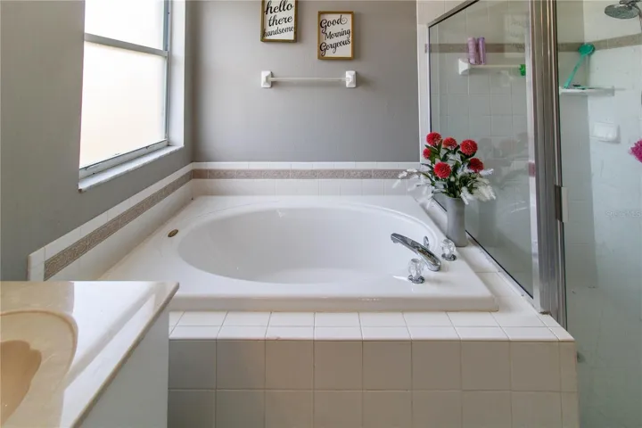 Don’t miss out on this beautifully designed home in the highly desirable community of Saddlebrook Village. Located on a quiet cul de sac this home features a bright open floor plan perfect for entertaining or family gatherings. At the front, two flex rooms offer endless possibilities, use them as a formal living space, home office, formal dining room, or game room. The spacious kitchen features new stainless steel appliances, solid wood cabinets, breakfast bar and generous sized pantry. The primary bedroom features tall ceilings with hardwood floors, huge walk in closet, garden tub, and step in shower. Primary bedroom is the only bedroom located on the right side of the home perfect for quiet privacy. All 3 other bedrooms on the left. New roof, AC, and water heater!!! Saddlebrook Village Community offers a variety of amenities including an oversized pool, tennis courts, basketball courts, and a large playground. No CDD FEE. Located less than 2 miles away from I75, less than 35 mins to Tampa International Airport, Wiregrass mall, the groves shopping plaza, The Krates for a wide variety of dining and shopping options, only 10 minutes away from the Tampa Premium outlets. This community and area has so much to offer. Schedule your showing today.