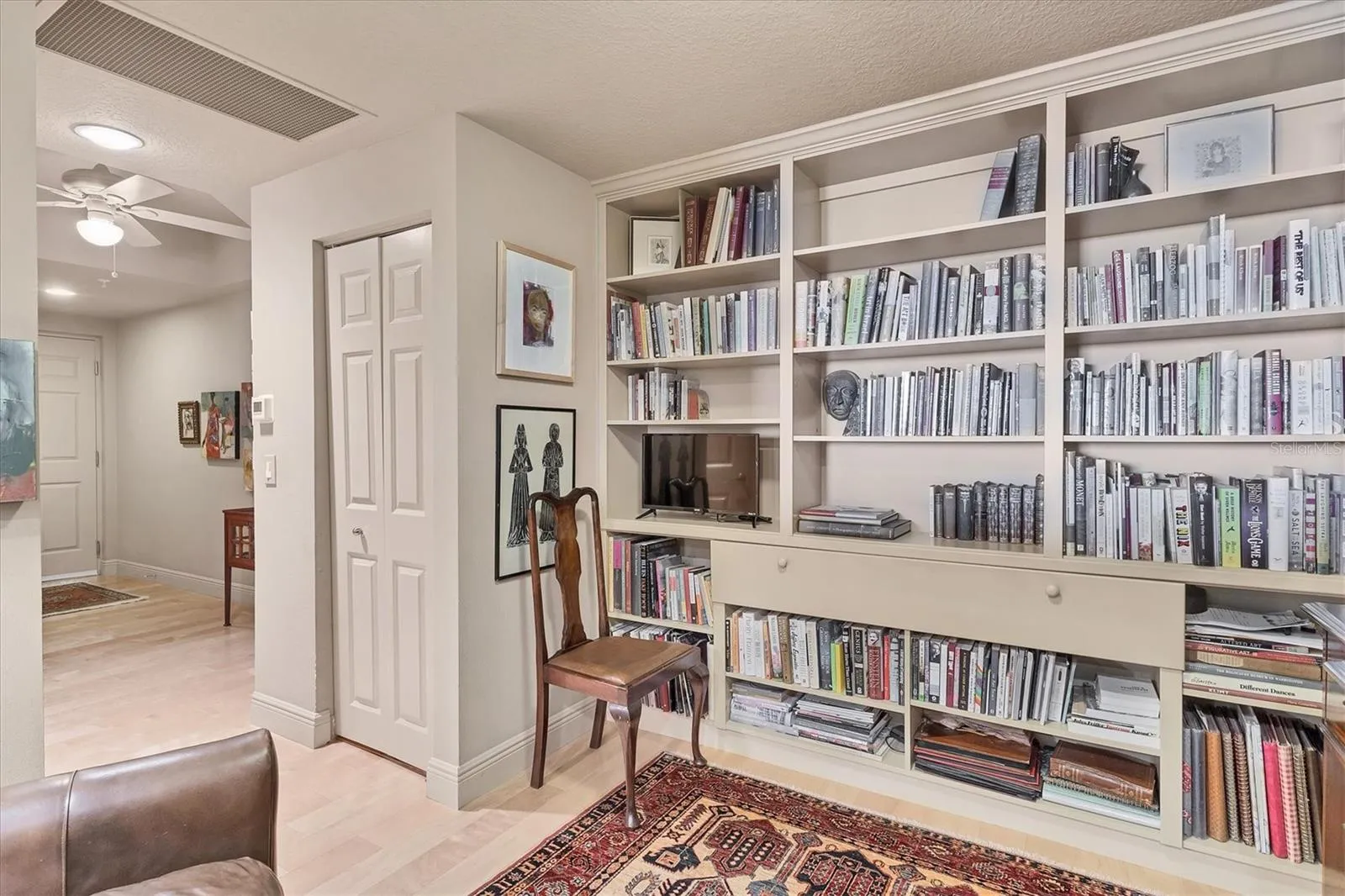 Live effortlessly in this stunning corner-unit residence located in Downtown Sarasota’s coveted Rosemary District. With 1,484 sq. ft., two bedrooms plus a den, and two full baths, this home perfectly blends style and comfort. Natural light pours through large windows, accentuating the elegant maple hardwood floors and high ceilings. The chef’s kitchen is a showpiece—featuring custom cabinetry, expansive countertops, and a central island designed for entertaining. The den, with built-in shelving, provides the ideal space for a home library or creative studio. The primary suite offers serene comfort with thoughtfully designed closets and refined finishes. Additional highlights include electric blinds, a covered terrace, a temperature-controlled storage unit, and a dedicated parking space. The community’s amenities are unparalleled—offering every convenience imaginable, including 24/7 concierge services, guest parking, three guest suites, on-site management and maintenance, a lap pool, spa, sauna, fitness center, movie theater, club room, billiards and game lounge, business office, library, dog run, wine-tasting room, and EV charging stations. Internet and streaming services are included in the HOA for added convenience. Enjoy a true sense of community with monthly resident events designed to bring neighbors together. Savor the best of Sarasota—fine dining, the Van Wezel Performing Arts Hall, and the vibrant downtown scene—all just steps from your door.