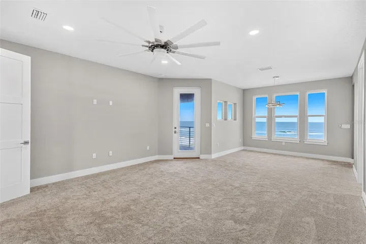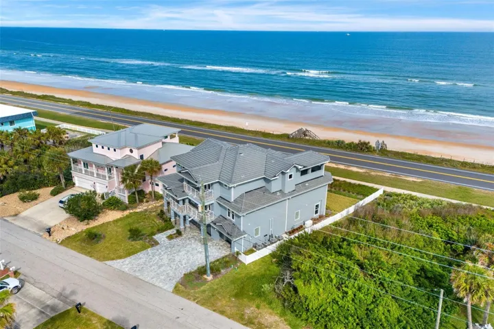 Where modern design meets the magic of coastal living, this newly built Flagler Beach oceanview estate redefines life by the shore. Imagine waking each morning to the sound of waves and panoramic views of the Atlantic and Intracoastal, framed by five private balconies capturing every sunrise and sunset. Step inside and discover 6,200+ square feet of contemporary luxury open-concept living spaces, floor-to-ceiling windows, and architectural fireplaces that blend warmth with sophistication. The chef’s kitchen is pure artistry: a waterfall island, custom cabinetry, and designer finishes ideal for gatherings, entertaining, and everyday indulgence. An in-home elevator connects all three levels, leading to serene bedrooms and a private primary suite where mornings unfold with ocean views and nights drift away under starlit skies. Outdoors, lush tropical landscaping, deep-well irrigation, and a private beach walkover create your own seaside sanctuary. With a four-car garage, energy-efficient construction, and luxury details at every turn, this home captures the essence of Florida coastal living elevated, effortless, and unforgettable.