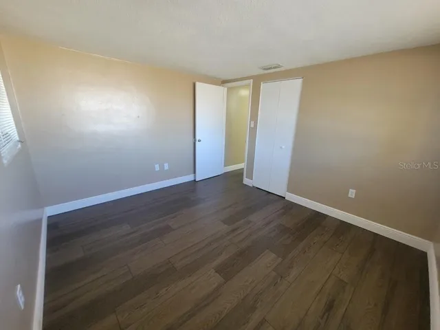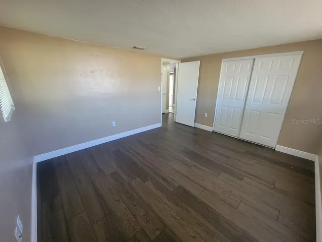 The split floor plan provides privacy, with the owner’s suite featuring a large walk-in closet and private full bathroom. Sliding glass doors off the dining area lead to a covered and screened patio, ideal for entertaining or enjoying the Florida weather.