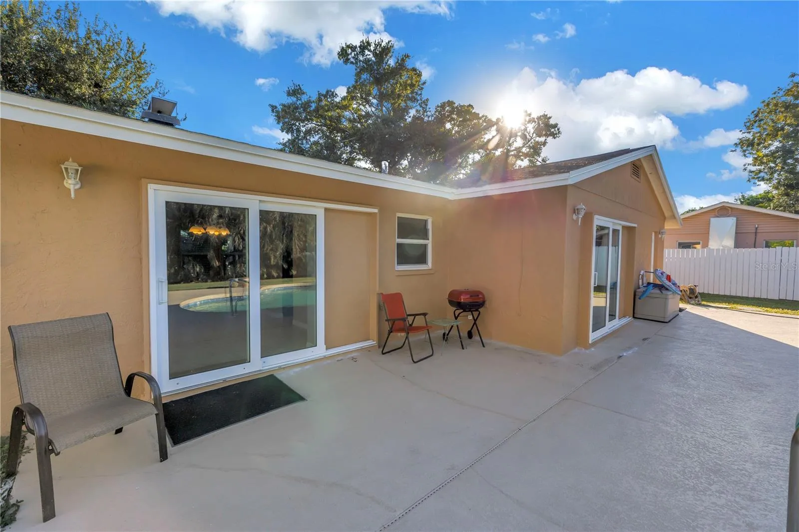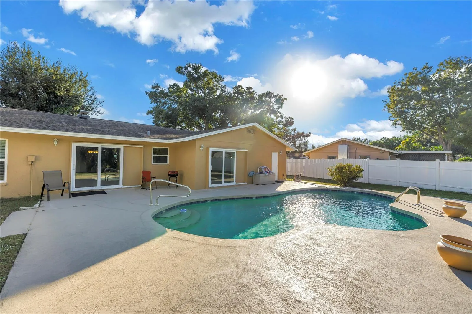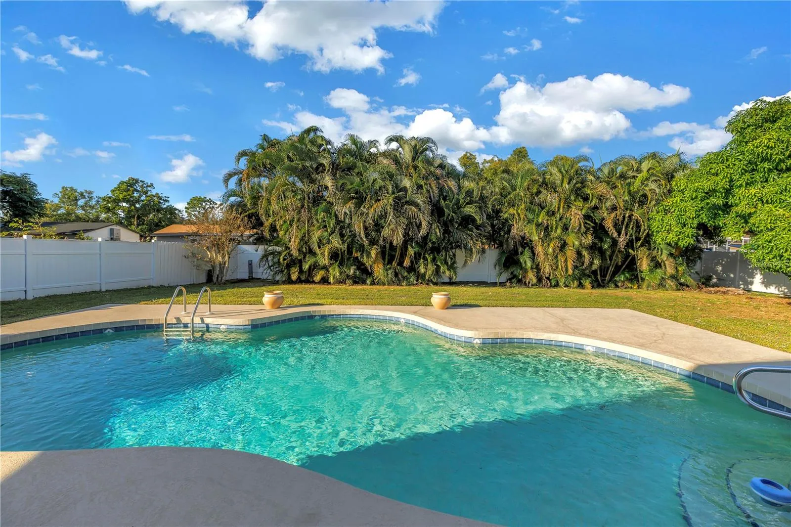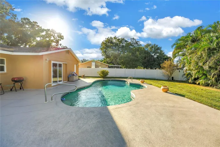 Step outside and enjoy the best of Florida living. The private backyard features a sparkling pool, a spacious patio for lounging or hosting friends, and a fully fenced yard with plenty of room to stretch out and enjoy the sunshine. Surrounded by lush greenery and mature trees, it’s the perfect place to unwind.