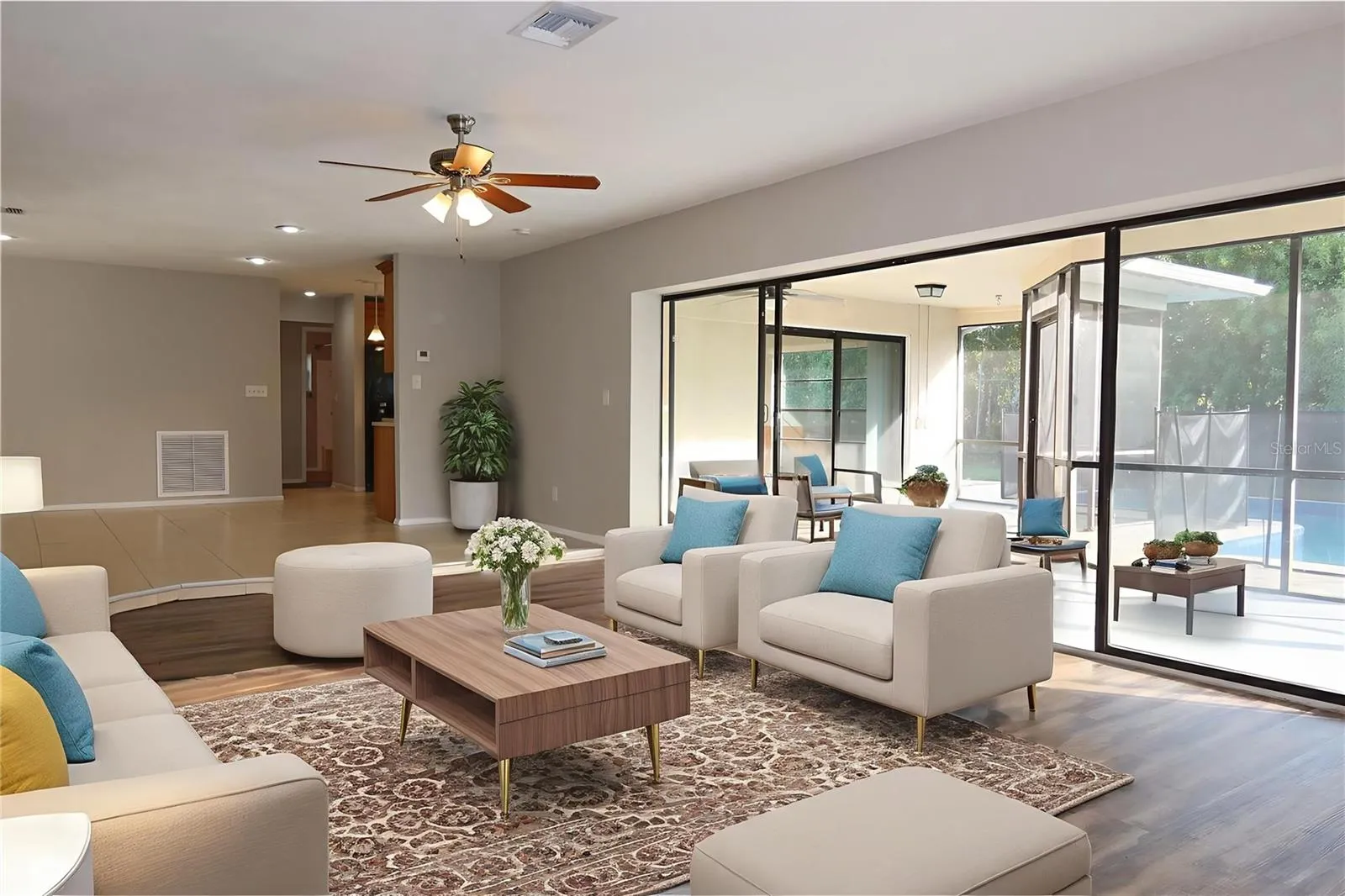 Welcome to this beautifully maintained 3 bedroom, 2.5 bath pool home, ideally situated on a quiet CUL-DE-SAC in the desirable Aloha Gardens neighborhood. Sitting on an oversized fenced lot of nearly 1/3 acre, this property offers exceptional space both inside and out. The expansive backyard not only features a beautiful pool with a large lanai for outdoor relaxation and entertaining, but also provides room to park an RV, a boat, or additional vehicles (NEAR .3 OF AN ACRE LOT) – something truly rare in this area. The attached 2 car garage adds even more convenience, offering generous storage and daily practicality. Step inside to a spacious, open-concept layout filled with natural light. The large living and dining areas flow seamlessly and are framed by oversized sliding glass doors that bring the outside in and showcase the serene view of the backyard oasis. One of the standout features of this home is its privacy – there are no rear neighbors, giving you peace, quiet, and a sense of retreat. The kitchen is equally impressive with beautiful wood cabinetry, recessed lighting, a central island, and a spacious pantry, making it both functional and stylish. Every bedroom in the home includes a walk-in closet, providing plenty of storage space and comfort for the whole family. Located less than 500 feet from the Holiday Recreation Center—with gym facilities, ball fields, tennis courts, and a playground and just minutes from US-19, shopping centers, dining options, downtown Tampa, and Florida’s most beautiful beaches, this property truly combines location, privacy, and spacious living. Best of all, there are NO HOA fees to worry about. This MOVE IN READY home is the perfect place to enjoy Florida living at its finest.