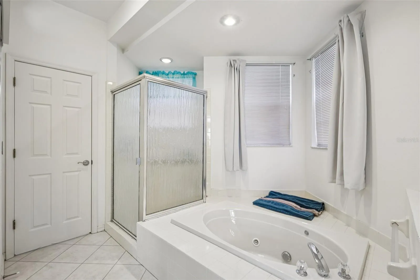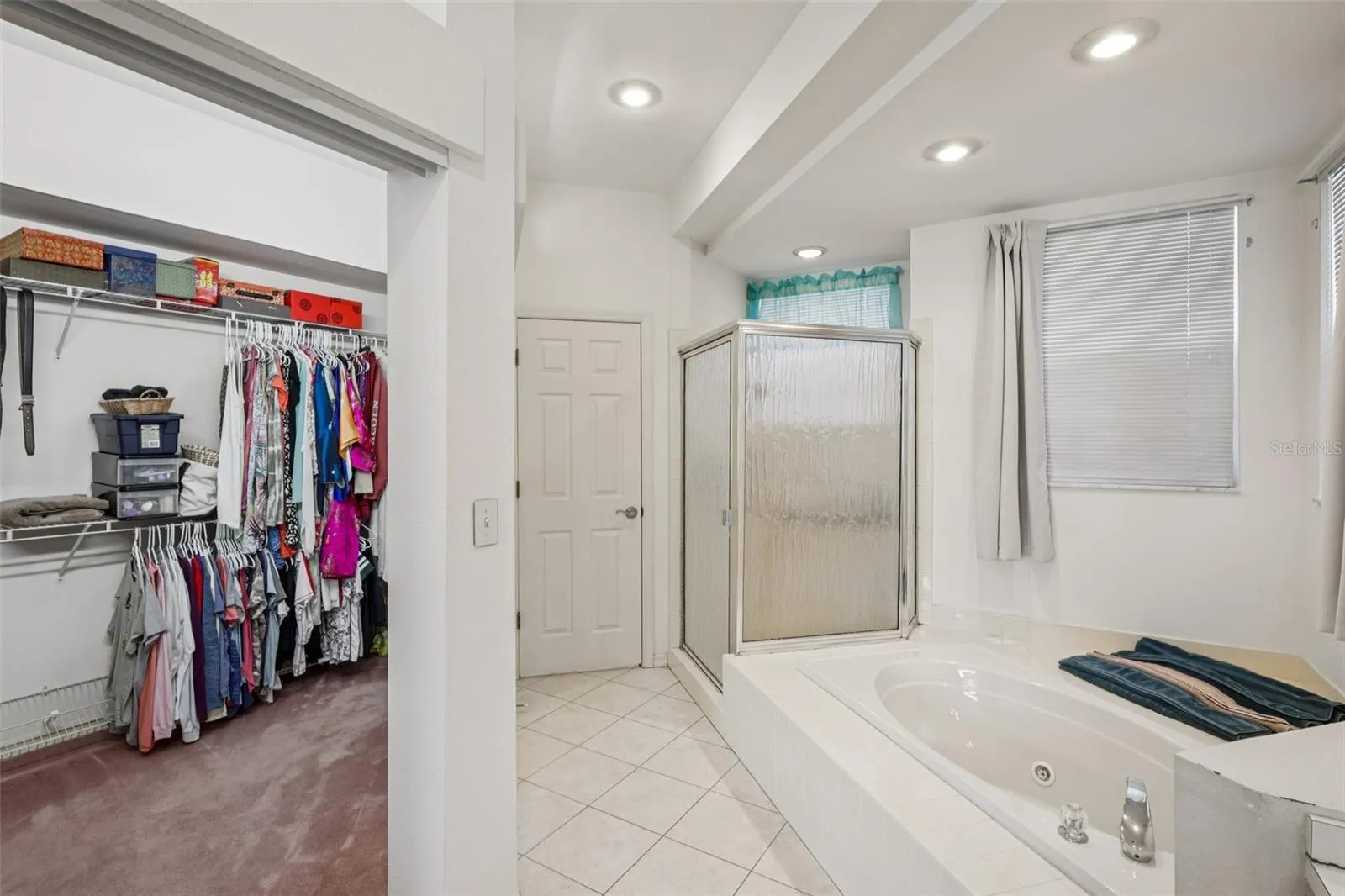 Back inside, the primary suite offers comfort and tranquility with abundant natural light and ample space. The ensuite bathroom feels spa-inspired, featuring a soaking tub, separate walk-in shower, recessed lighting, and a layout designed for ease and serenity. A large walk-in closet ensures plenty of room for organization and storage.