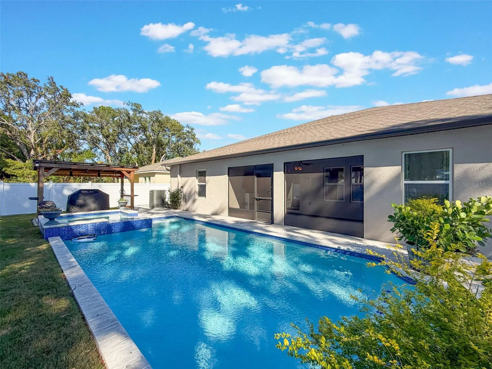 Step outside to your private oasis: inground pool & spa, full safety fencing, upgraded rock landscaping, new Bermuda sod, playground zone, grill gazebo, and fully fenced yard.