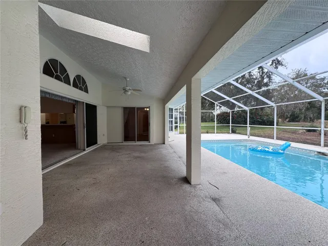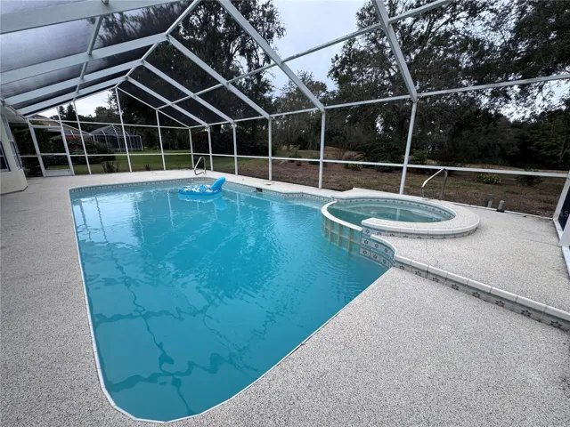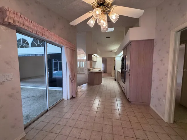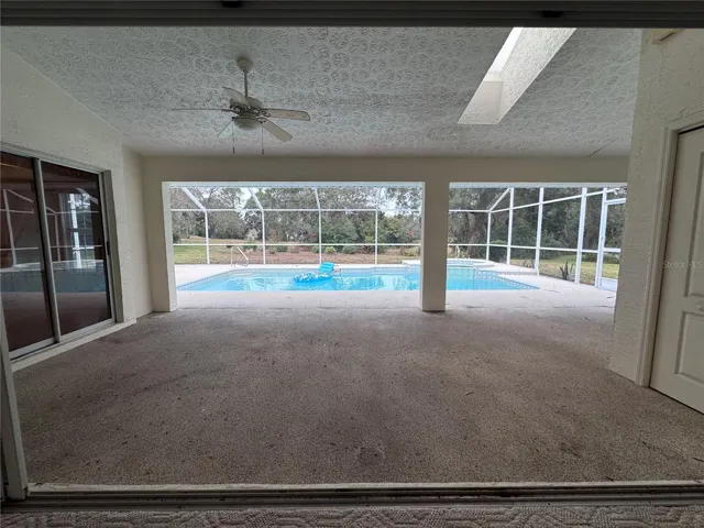 Discover the perfect blend of comfort, space, and Florida living in this beautifully maintained home located in the highly desirable Links at Seven Hills community. From the moment you step inside, you’ll feel the openness of the high ceilings, the flow of the expansive living areas, and the abundance of natural light that makes this home truly special. This split-floor-plan layout offers both function and privacy. As you enter, you’ll find a dedicated dining room to the left and a spacious living room to the right, with your eyes immediately drawn to the sparkling crystal-blue pool just beyond the sliders. This tranquil outdoor oasis overlooks the rolling hills of the previous golf course, guaranteeing no rear neighbors and providing peaceful views of the walking trail just steps behind the home—perfect for evening strolls. The kitchen features generous cabinet space, a breakfast bar, and a charming nook with a bay window overlooking the pool and backyard. A convenient door from the nook leads directly out to the pool area. Off the kitchen, a hallway brings you to two well-sized guest bedrooms—both with ceiling fans and carpet—with one bedroom offering a built-in desk and shelving. The large guest bathroom includes dual sinks, a tub/shower combination, and its own access to the patio for added convenience. You’ll also appreciate the indoor laundry room, complete with washer, dryer, utility sink, and extra cabinetry. The primary suite is truly impressive—stretching approximately 27 feet in length with soaring ceilings, two closets, and sliding doors that open to the pool area. The ensuite bathroom offers a soaking tub, a walk-in shower, and plenty of space to unwind. Outside, the oversized garage features a finished floor, a designated workshop area, and additional built-in cabinetry for storage. **The sellers are willing to install a brand-new roof prior to closing, giving you peace of mind for years to come.** Located near the YMCA, shoppes, restaurants and medical providers, you’re perfectly situated in Hernando County, close to everything you need. This home is ready for its next chapter, and we hope the next owner is you! Schedule your showing today and experience all that 1091 Tournament Drive has to offer!