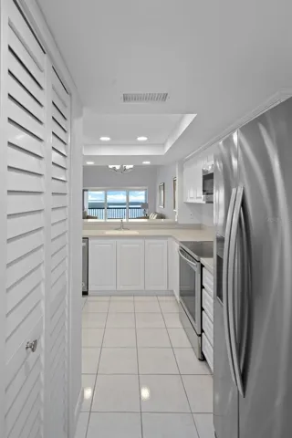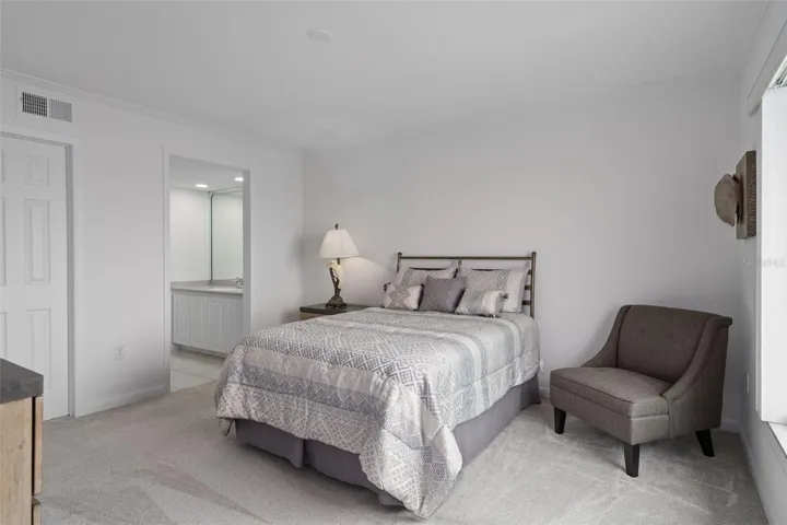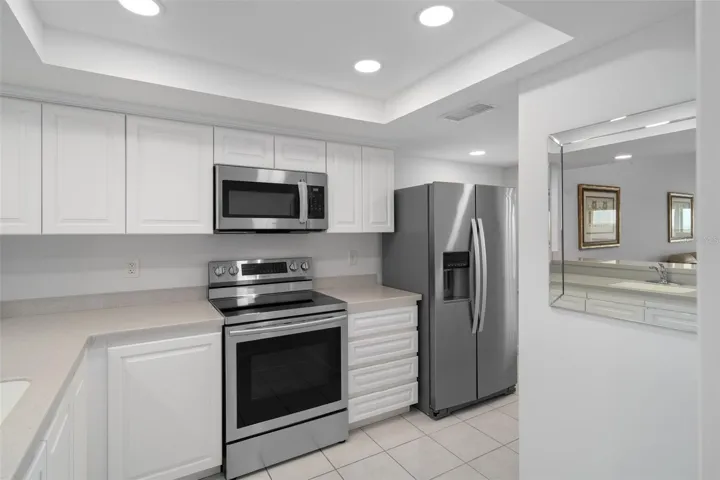 PENTHOUSE with DIRECT GULF OF MEXICO FRONTAGE. Gorgeously remodeled and FURNISHED, top floor unit in the sought after SAND PEBBLE community. This unit has been newly remodeled and is kept in immaculate condition. Gorgeous kitchen with solid surface counter tops and stainless appliances. Pass through to dining room. Built in display cabinets in dining room (under pass through). Great room with vaulted ceiling, skylight and plant shelf. Lanai has been enclosed to add additional air conditioned square footage (1025 base + lanai area= 1103sf heated). Direct, Southwest view of the Gulf of Mexico from kitchen, dining room, enclosed lanai and master suite. North east view of the water from the kitchen and guest bedroom. Master suite has a HUGE closet and En suite bath with new vanity, tops and updated walk in shower. Split bedroom with Guest bedroom toward the front of the unit Guest bath with new vanity, tops and updated tub/shower. Window in Master bedroom and sliders were replaced by previous owner. Tile in main area, kitchen and baths, carpet in each bedroom and on enclosed lanai. In unit washer and dryer. AC 2019, Hot water heater 2021. Crown Molding in great room and bedrooms. One reserved parking space UNDER BUILDING. One storage locker under the building. Roof replaced in 2022. RV/Boat/Kayak storage upon availability for an extra fee. Monthly fee includes: escrows for roof, escrows for exterior maintenance, landscaping, maintenance of all master amenities, 24 hour gate guard, manager, insurance on building (not interior of unit), flood insurance on building (not interior of unit), water/sewer, trash, basic cable and WIFI. Close to many waterfront restaurants, Historic Downtown New Port Richey, The Hacienda hotel, restaurants, breweries, shopping, night life, Simms Park (concerts, festivals), public beaches/parks, medical, shopping, water activities, about 20 min to Tarpon Aquarium and Tarpon Sponge Docks, approx 45 minutes to Caladesi Island and Honeymoon island, approx 60 min Clearwater Beach, approx 60 min to Tampa airport, Tampa Cruise Port, Theme parks, Sports arenas, Fine Dining and Theatre. NO PETS. NO SMOKING. Not age restricted. **AUDIO AND VIDEO MONITORING INSIDE UNIT**
