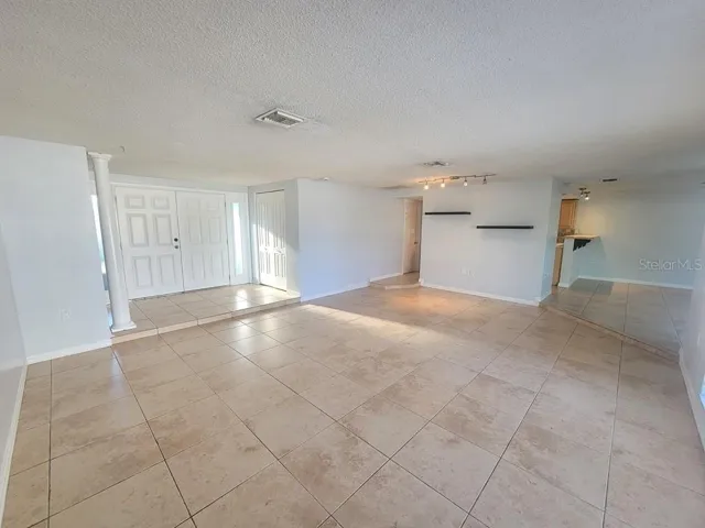 The spacious kitchen features a sit-at bar area, ideal for family gatherings and cooking together. The home offers neutral paint throughout and tile and vinyl flooring — no carpet!