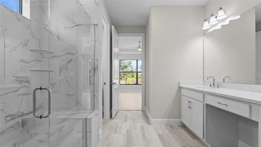Cresswind Lakewood Ranch by Kolter Homes is an exclusive gated community in Lakewood Ranch, Florida, designed for active adults seeking new energy-efficient homes and low-maintenance living. Residents enjoy a pet-friendly environment, scenic walkways, and access to a private lakeside clubhouse with organized activities, flexible event spaces, fitness and yoga studios, and creative art facilities. Outdoor amenities include pickleball, tennis, bocce, resort-style pools, a dog park, food truck court, and social areas. Located in Sarasota/Bradenton, the community offers proximity to beaches, shopping, dining, and cultural attractions, making it an ideal choice for those searching for vibrant, resort-style living on Florida’s Cultural Coast. Step into the Santa Rosa, a spacious single-story floor plan offering 3 bedrooms, 3 bathrooms, a private den, and a 3-car garage. Through its double-door front entry, the home opens to an expansive gathering space filled with natural light from two large sliding glass doors. The rear kitchen layout is ideal for entertaining, featuring GE stainless steel appliances, quartz countertops, ample cabinetry, and a large island with seating for four. Luxury tile flooring extends through the main living areas, den, and primary suite.The owner’s suite is privately located at the rear of the home and features a coffered ceiling, oversized walk-in shower, dual vanities with quartz countertops, and a large walk-in closet. Two secondary bedrooms are positioned at the front of the home for added privacy. Additional upgrades include impact glass throughout, a drop zone, floor outlet, and pre-plumbing for a future pool and summer kitchen. A privacy wall enhances the covered lanai, which overlooks tranquil pond and preserve views, perfect for relaxing or entertaining.