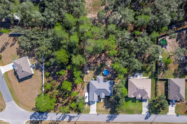 Two additional bedrooms include closets and ceiling fans, and the second bathroom features a tub/shower combination. The laundry room comes equipped with a washer, dryer, and utility sink. Step outside to the fenced backyard, partially shaded by mature pine and oak trees. Enjoy the above-ground pool, heated spa and fire pit, all included with the home. There is plenty of room for your boat, outdoor toys or RV—complete with an RV plug. A sprinkler system and garage freezer are also included. This is Florida country living at its finest, offering comfort, flexibility, and modern style. Come make it yours!