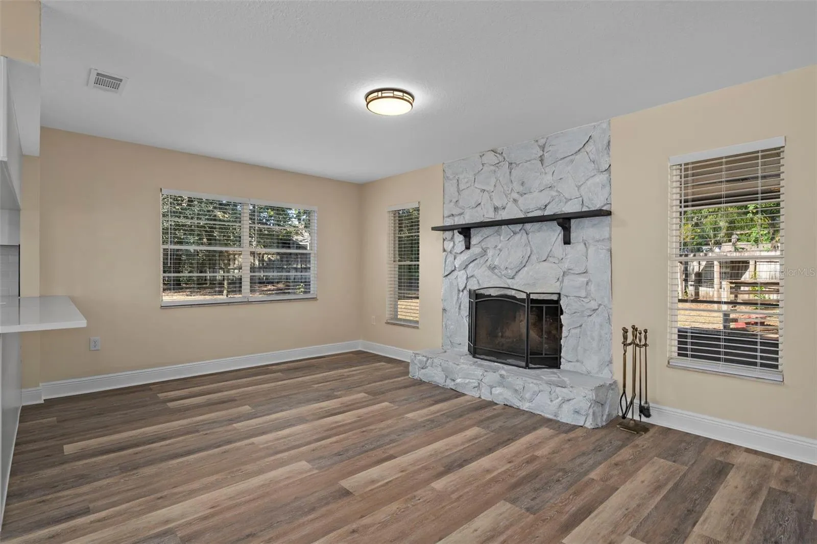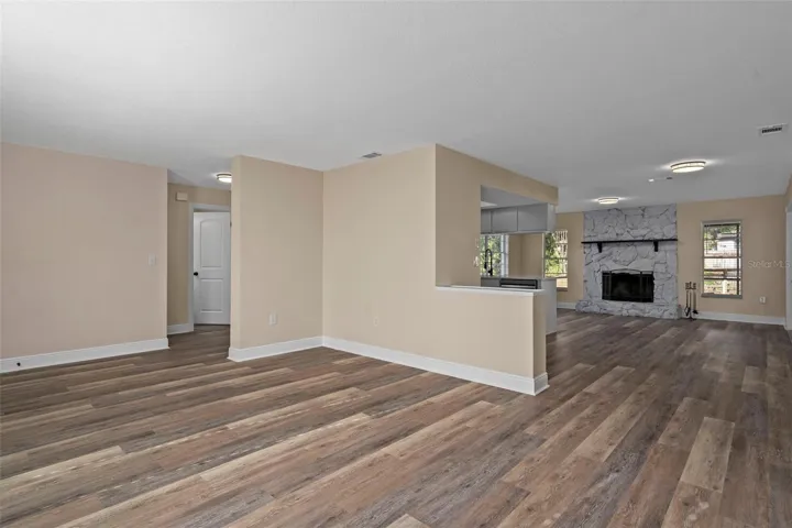 Beautifully renovated 2-bedroom, 2-bathroom, 2-car garage home offering 1,261 sq ft of living space (2,288 sq ft total under roof) on an oversized .40-acre fully fenced corner lot with shed. This move-in-ready property features luxury vinyl plank flooring throughout, a spacious screened room, a brand-new kitchen with new cabinets, quartz countertops, and stainless steel appliances, as well as updated bathrooms and fresh paint inside and out. The open-concept split floor plan includes a cozy family room with a wood-burning fireplace plus a separate formal dining room and living room. Major upgrades include a new roof (2025) and new duct work & HVAC (2022). Ideally located in Spring Hill near shopping, restaurants, and the Suncoast Parkway for an easy commute to Tampa. Easy show, schedule an appointment today!!!