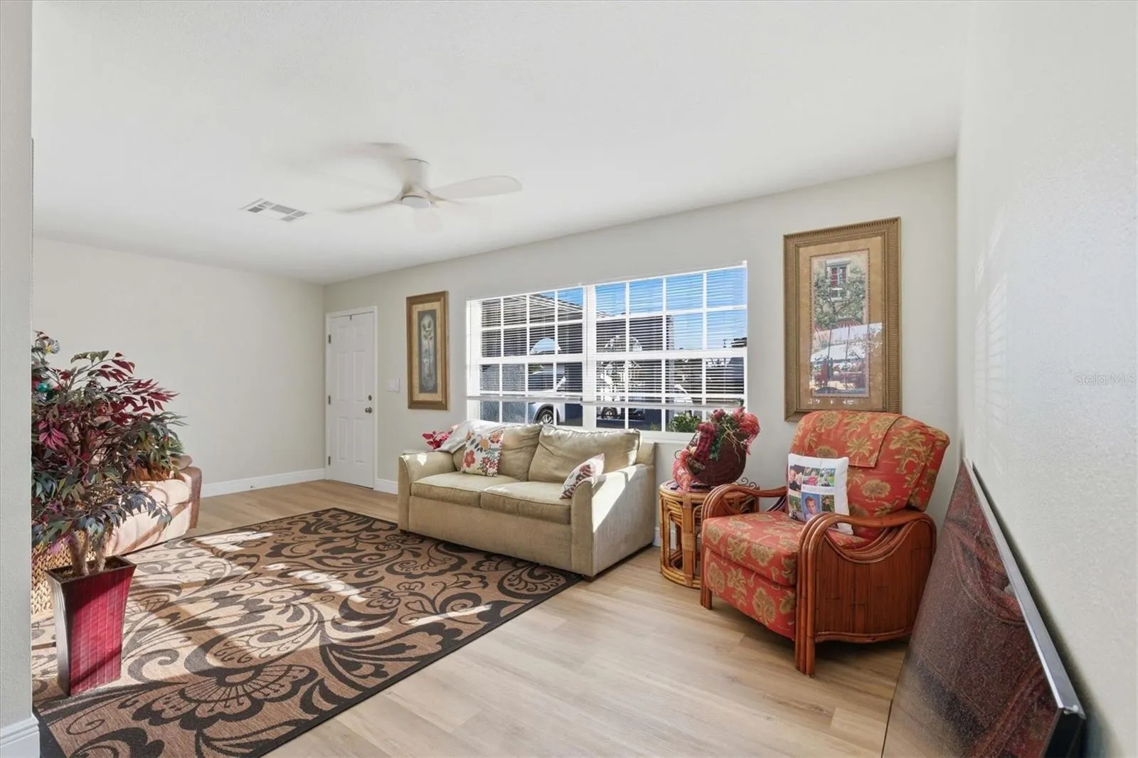 This beautifully updated 2-bedroom, 2-bathroom home offers modern comfort and style throughout. Recent improvements include a new roof (Oct 2025), luxury vinyl plank flooring, oversized baseboards, and fresh interior paint. The contemporary kitchen features shaker cabinetry, stunning quartz countertops, and brand-new stainless-steel appliances, creating the perfect space for cooking and entertaining.