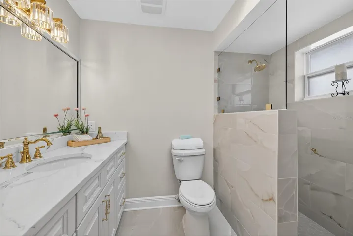 Completely renovated with licensed contractors and all Pasco permits closed, offering buyers’ peace of mind, this home is a MUST SEE! Open, light and bright design gourmet kitchen features custom quartz countertops, with NEW STAINLESS APPLIANCES, slide out shelving in NEW Cabinetry provides ample storage and convenience. Primary bedroom boasts large walk in closet, ensuite bathroom with updated walk in glass shower and direct access to outdoor waterfront for those relaxing mornings/evenings soaking in the salt air. Guests enjoy a large soaking tub while in this split plan with a privacy pocket door into hallway.