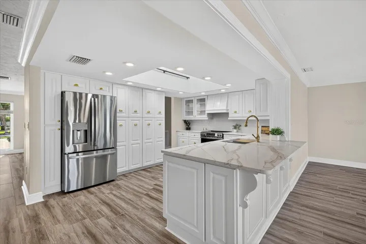 Welcome to this beautifully renovated 3-bedroom, 2.5-bath waterfront home offering 2,291 heated sq ft of upgraded living space. Situated on a prime DEEP GULF ACCESS waterway in the boating community of Gulf Harbors, this property features 70 feet of seawall, perfect for boating, fishing, and enjoying serene waterfront sunset views. The home has been thoughtfully updated throughout, blending modern comfort with coastal charm.