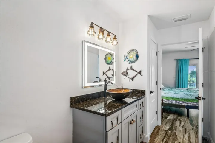 This elevated 2022 Gulfstream Homes custom build delivers modern coastal living with freedom and flexibility. Featuring 3 bedrooms and 2 bathrooms in a thoughtful split open floor plan, this home offers privacy, comfort, and stylish finishes throughout—with no HOA and no short-term rental restrictions. Inside, you’ll find designer touches including crown-topped kitchen cabinetry with soft-close drawers and doors, stainless steel appliances, luxury vinyl flooring (installed 3 months ago), upgraded bathroom hardware, and immaculate contemporary styling. The home has no carpet and has never flooded—there is no ground-level living space, making storm prep as simple as locking the door and moving your vehicles. Step outside to your own Florida retreat: a heated saltwater pool (12×24) surrounded by cool-deck pavers (40×20), tropical banana trees that actually produce, and a floating dock perfect for kayaking or waterfront relaxation. Two sheds provide additional storage, and the property includes three driveways with space for 6–12 vehicles—ideal for guests, trailers, or a boat. A boat lift is nearby or enjoy quick water access from the public boat ramp just 2 minutes away. Upgraded James Hardie Hardie Plank Fiber Cement Siding enhances durability and curb appeal, backed by a 30-year non-prorated warranty and a 15-year ColorPlus finish warranty. With a quiet location just minutes from restaurants, parks, and attractions, this home functions beautifully as a primary residence, vacation getaway, or high-performing investment property—especially with zero rental restrictions. Don’t miss this incredible opportunity to own a newer elevated home with over $55,000+ in upgrades and unmatched flexibility. Schedule your showing today—this one won’t last!