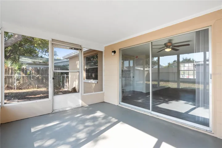 Come home to this newly renovated 2 bedroom, 2 bathroom 1 car garage home in the heart of Port Richey. All new kitchen and bathrooms, new laminate flooring, fresh paint in and out AND a NEW ROOF in 2025. Entering the home is a spacious living room, dining room combination. The kitchen has all new cabinets, countertops, stone backsplash and stainless steel appliances. There is a screened and covered patio that goes out to a fenced backyard with storage shed. The primary suite has a private bath that has been completely redone with a tile shower, toilet, vanity and all new fixtures. The primary also has a walk in closet. The second bedroom utilizes the second bathroom/guest bathroom and has also been completely redone. This home is turnkey ready for you to move in before the Holidays!