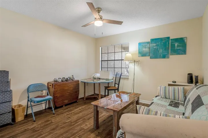 Adorable updated detached villa in a pet friendly village with its own pool. This home has newer appliances, new floors, new roof 2025, new hvac 2025 and newer garage door 2023. The open concept floor plan is light and inviting. The home offers a large primary bedroom and bathroom with double walk-in closet. Tons of cabinets and storage. The primary bedroom has a private entrance to the enclosed lanai, Also from the eat in kitchen you can access the lanai and the outdoor large patio. Which makes it easy and convenient for cooking out.