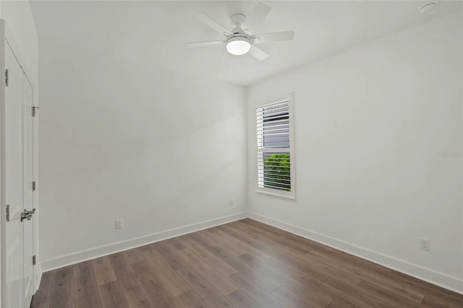 The front guest bedroom offers ample space and privacy, complete with its own bathroom featuring a tub/shower, oversized tile to the ceiling, Quartz countertops, and a dedicated linen closet.