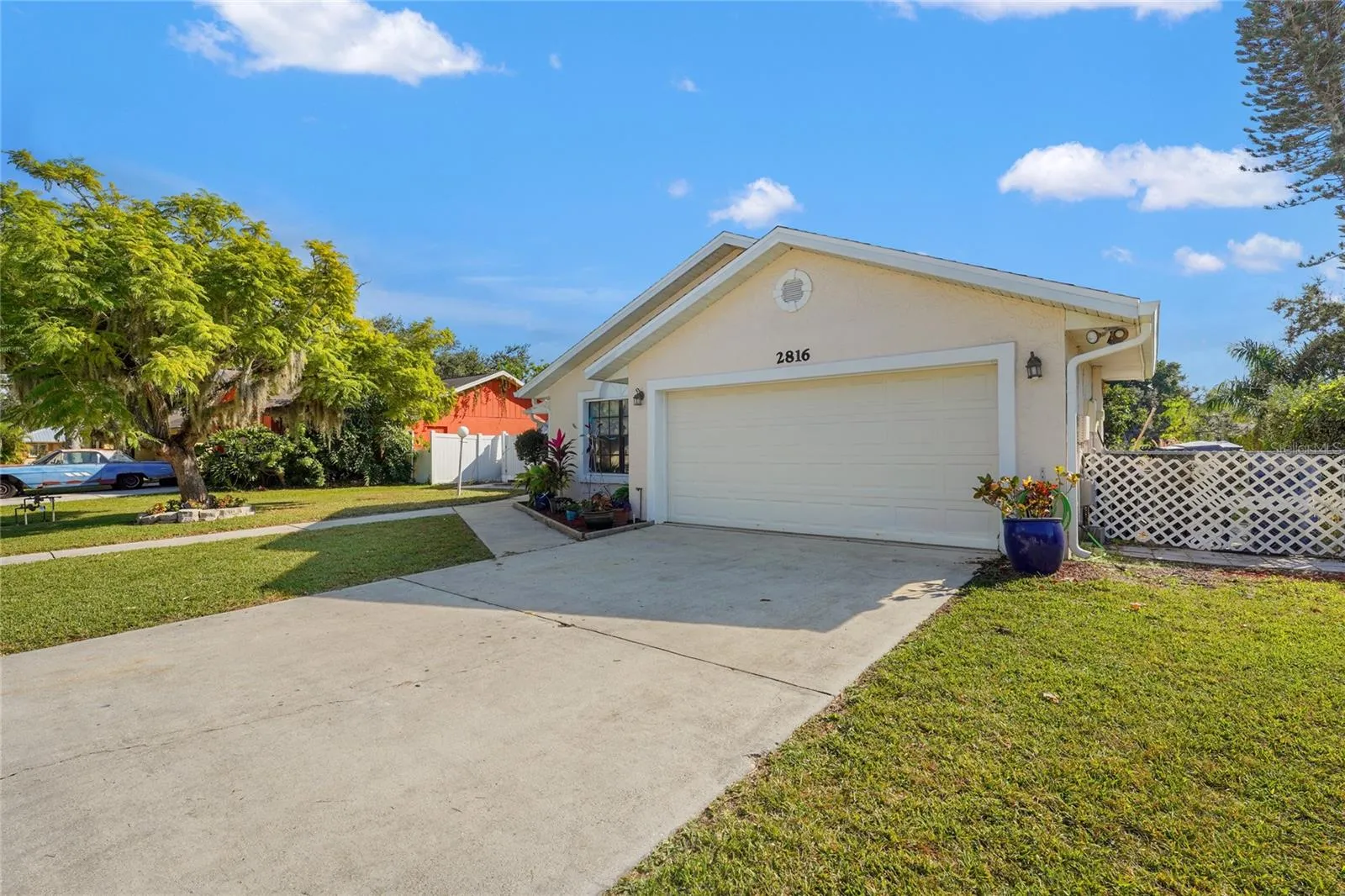 BACK ON MARKET & BETTER THAN EVER WITH A BRAND NEW ROOF! Welcome to this charming lake view home in the heart of Bradenton! This well maintained concrete block residence features an inviting open layout with vaulted ceilings that create a bright and spacious feel in both the living room and primary suite. The home offers durable ceramic tile flooring throughout, a walk-in closet in the primary bedroom, and an abundance of natural light that enhances the warm, welcoming atmosphere. Step into the spacious sunroom overlooking the lake, perfect for relaxing mornings or entertaining with a view. The fully fenced, large backyard offers privacy and plenty of room to enjoy the outdoors, complete with avocado and mango trees, concrete patio space, shed, garden, and room to park a boat or RV on the side of the home. Additional highlights include a two car garage, updated primary bath and a beautifully landscaped front yard. There are NO HOA or CDD fees, and the home is located in Flood Zone X (flood insurance IS NOT required)! Experience the true Florida lifestyle ideally located near downtown Bradenton and Lakewood Ranch, offering easy access to pristine Gulf beaches, vibrant dining, and endless outdoor recreation.