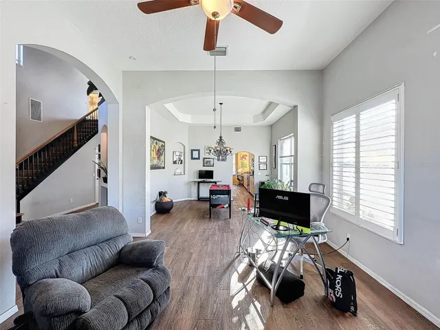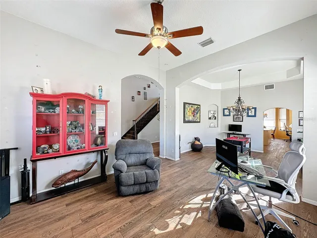 JUST IN TIME FOR THE HOLIDAYS, It’s time to celebrate and ring in the new year. Welcome home! This beautiful property boasts a stunning partial sunset view, giving you the perfect backdrop for a tranquil and picturesque setting. Located in the highly sought-after gated community of Sterling Hills, this 4 bedroom with a flex room, 3 bath home offers contemporary yet functional living spaces. Over 3300 sq ft of heated living space, there is plenty of room for the whole family to spread out and enjoy their own privacy. The location on a cul-de-sac ensures peace and privacy, away from the hustle and bustle of mainstream traffic. Step inside the grand entrance and be greeted by soaring 14-foot ceilings that give an immediate sense of luxury. To the right, you’ll find the formal living and dining space, a perfect spot for entertaining guests or spending quality time with your loved ones. The abundance of natural light fills the rooms, creating a warm and inviting atmosphere. You are immediately greeted with a sense of opulence and elegance. Additionally, the AC, water heater, and garage door opener have all been recently upgraded, ensuring your comfort and convenience. This stunning property offers a perfect blend of luxury and comfort. The main floor features open concept design seamlessly connects the family room and kitchen, creating a warm and inviting atmosphere for gatherings and creating lasting memories. The kitchen is a chef’s delight, with a large center island, ample storage and counter space, and a built-in desk area. The first floor also includes a laundry room and a full guest bath, leading to the luxurious primary suite with a walk-in closet, double vanities, a soaking tub, and a separate walk-in shower. French doors lead out to the lanai, perfect for enjoying the beautiful fully fenced in back yard with tropical landscaping and covered lanai. Your yard is large enough to add a pool if you desire. Upstairs, Spacious Bedrooms, Private Retreats, and a smaller family room; allowing for privacy and versatility providing a another area of personal space this room has been repainted.(more pictures coming soon.)The possibilities are endless with your vision. You will find 3 additional bedrooms and a flex room, each offering ample privacy & comfort for every family member or guest. Minor TLC needed mostly cosmetic. The community amenities have 2 Club houses, 2 pools, basketball court, tennis courts, dog park, playgrounds and sidewalks for leisurely walks. Lets talk location; minutes away from trendy shops, Boutiques, restaurants and a local Breweries. Gulfcoast and spring fed river nearby under 15 minutes. Medical services available near by in minutes. Easy commute to Tampa only 35 minute ride. Less than 5 miles to the expressway of 589. An hour and half to Orlando with all the world class amusement parks. This home is truly a sanctuary where you can unwind and create lasting memories with your loved ones. This property is a remediated sinkhole from 2012. Don’t miss out on this incredible opportunity to own a piece of paradise in the heart of Florida! Schedule your private tour today.