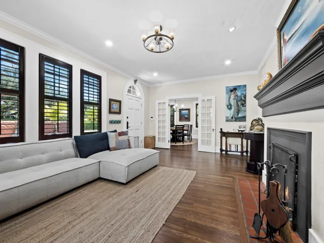 Situated in the highly desirable West of Trail neighborhood of Hudson Bayou, this fully restored 1922 residence is the perfect blend of historic charm and modern conveniences. The property offers 2,284 square feet with two bedrooms and two bathrooms in the main house, plus a one-bedroom, one-bathroom guest house. Renovations include a 2006 conversion of the garage into a guest house with a stucco privacy wall and Chicago brick driveway. In 2018, a spacious primary suite with double closets, a large bath, and French doors to a screened lanai was added. High ceilings, oversized impact windows, and refinished hardwood floors (2024) add to the home’s appeal. Recent updates include a recoated roof with a 10-year transferable warranty (2025), A/C (2023), water heater (2024), encapsulated crawlspace with dehumidifier (2024), foundation reinforcement with new support jacks (2024/2025), and hurricane-rated windows. The kitchen and dining area were fully renovated, featuring custom Calistoga cabinetry and designer appliances (2024/2025). Additional features include recessed lighting, custom closets, a Murphy bed, and a natural gas fireplace. A wellness room with an infrared sauna (2025) completes the interior. Exterior highlights include enhanced landscaping, three all-weather sheds, a pergola with natural gas grill hookups, and a serene brick courtyard surrounded by mature landscaping for privacy. The location is unparalleled, with proximity to Southside Village, the downtown Sarasota bayfront, St. Armands Circle, and the world-famous beaches of Lido and Siesta Key.