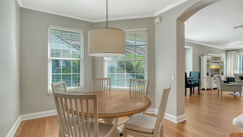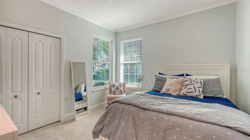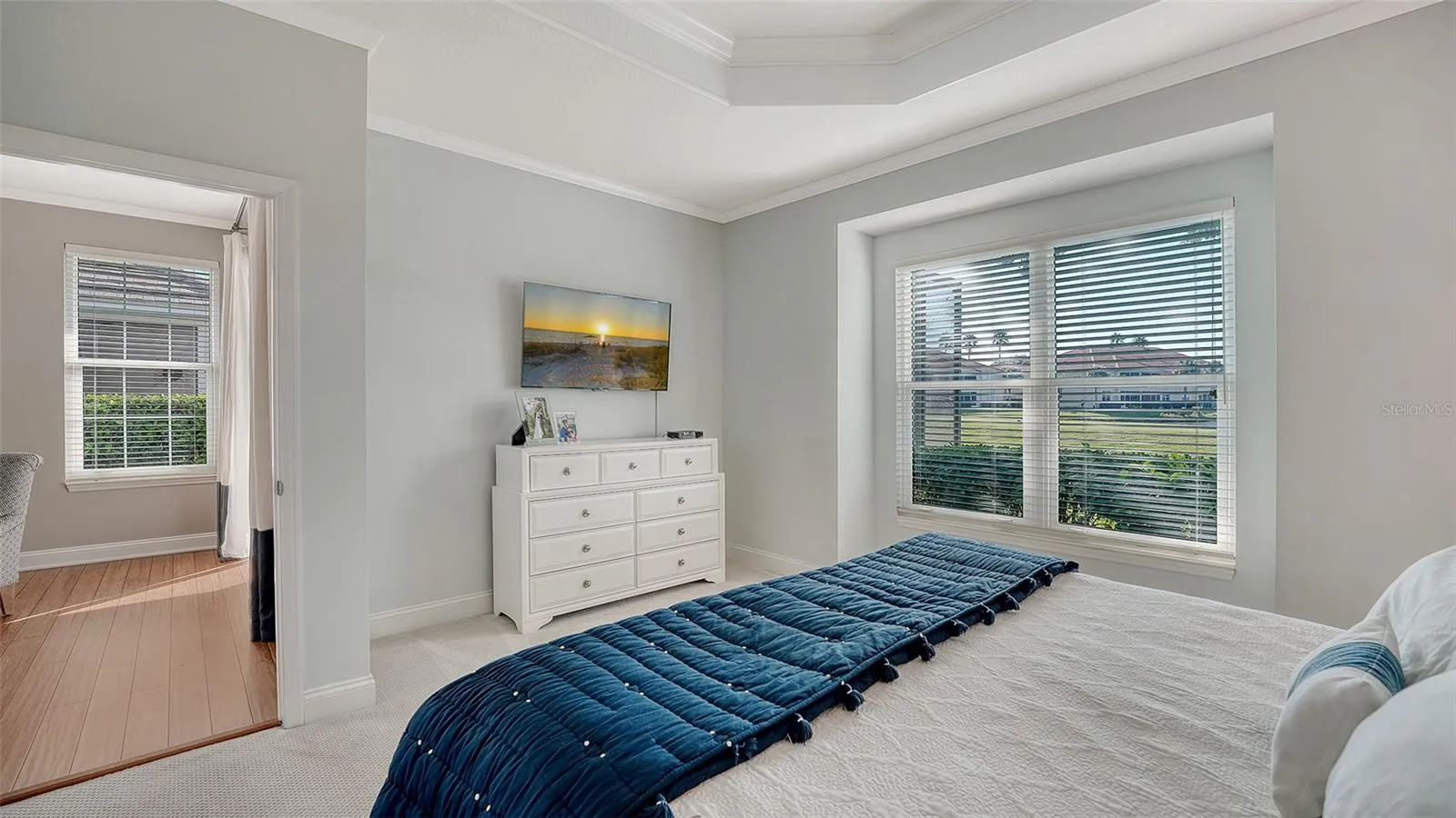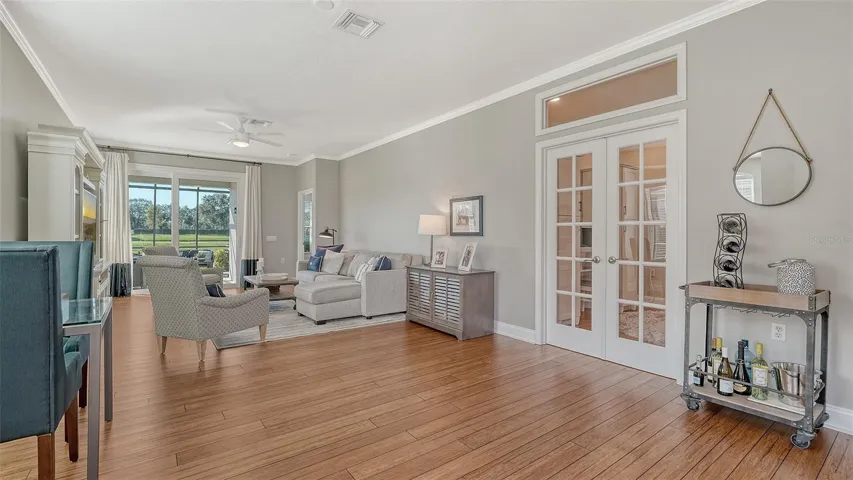 Experience the relaxed lifestyle you’ve been longing for in this stunning Weston villa, on a premium lot in the maintenance-free Lakewood Ranch Country Club Village. Offering breathtaking water and golf course views, this beautifully updated home is designed for seamless indoor-outdoor living. Enjoy an open and inviting layout, where natural light pours in through new impact-rated sliding glass door and windows, illuminating the beautiful bamboo wood flooring. The gourmet kitchen, featuring updated white cabinetry, quartz countertops and a tiled backsplash, flows effortlessly into a spacious dining and great room, ideal for entertaining. The primary suite offers a picturesque water view and an alluring bath featuring walk-in shower with waterfall tile design, dual sinks and mirrors, quartz countertop and large closet. A separate den with French doors and a built-in desk and wardrobe cabinet, provides the ideal home office, den or room for extra guests. Go onto your expanded lanai to take in the serene scenery and sweeping views of the private Legacy Course’s 17th fairway. This home also includes newer appliances, LED recessed lighting, ceiling fans, light fixtures, gutters and more. (Some furniture can be purchased separately). Weston’s maintenance includes Spectrum TV and internet, pressure washing the roof, painting of exterior, lawn and sprinkler care, annual backflow testing, as well as heated pool and spa. For a separate fee you can join LWRGCC with 72 holes of golf, three clubhouses, tennis, pickleball and more. There are a multitude of shopping, dining, health care and entertainment options close by, as well as the best beaches in Florida. Look no further!