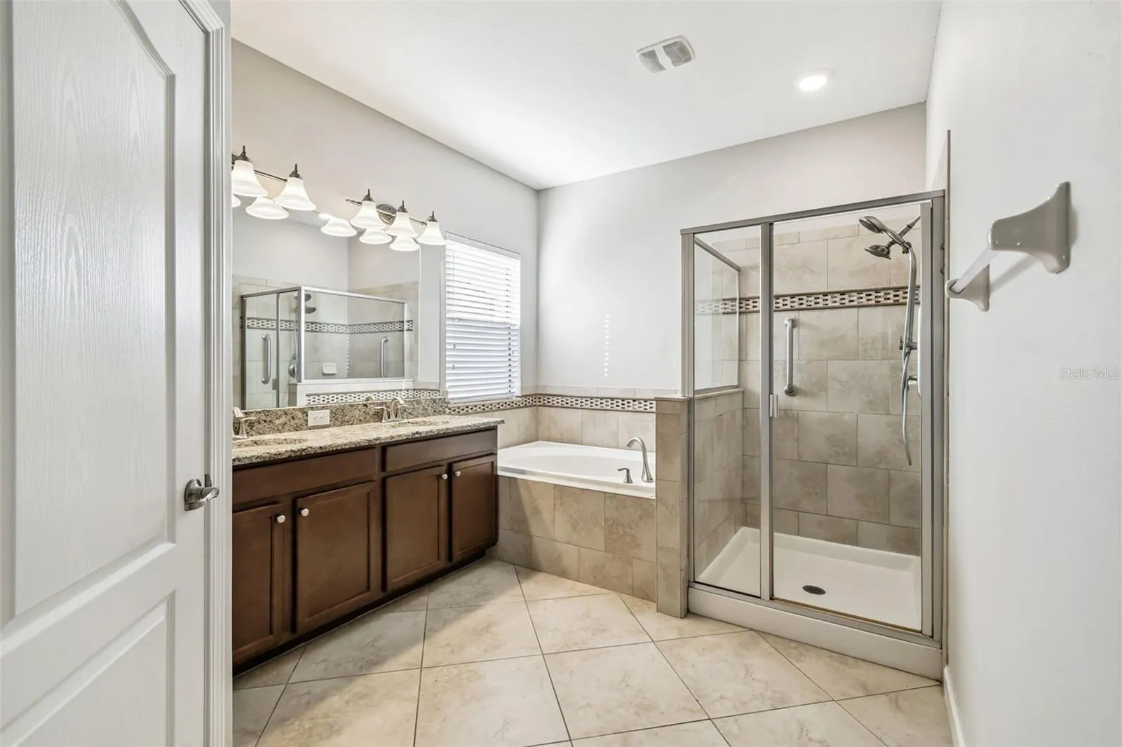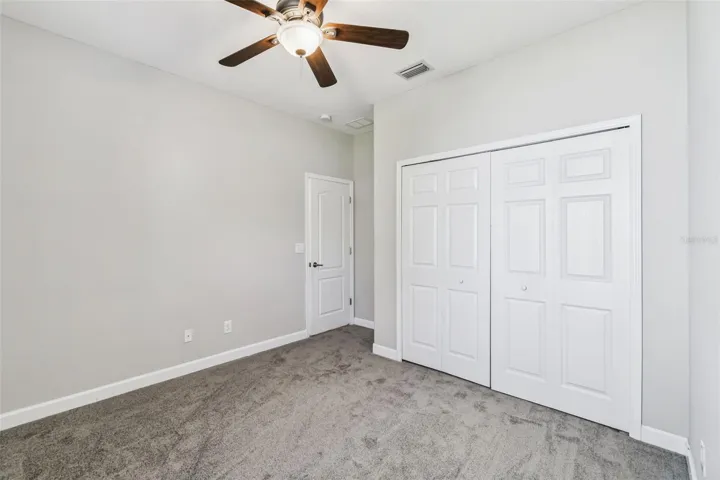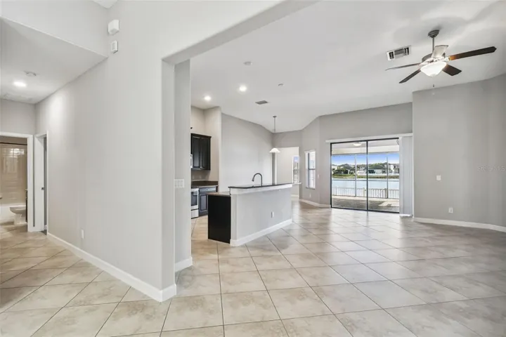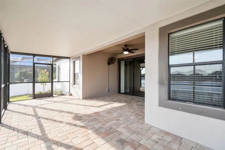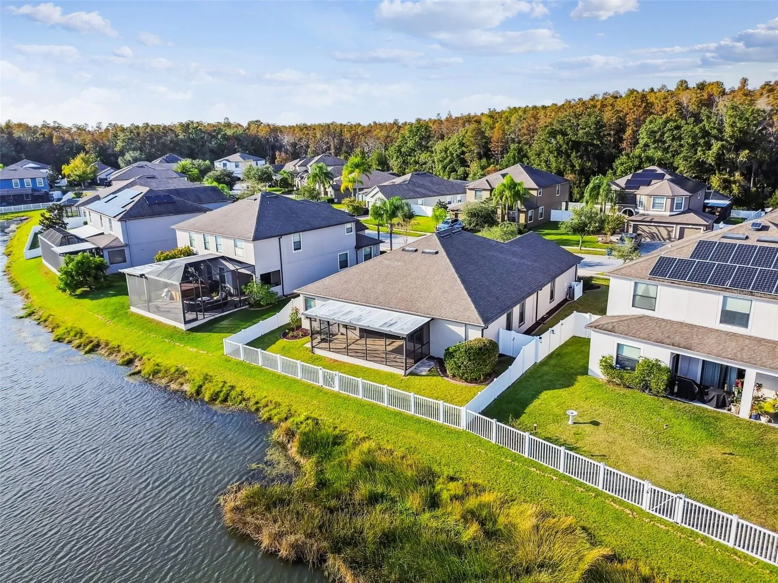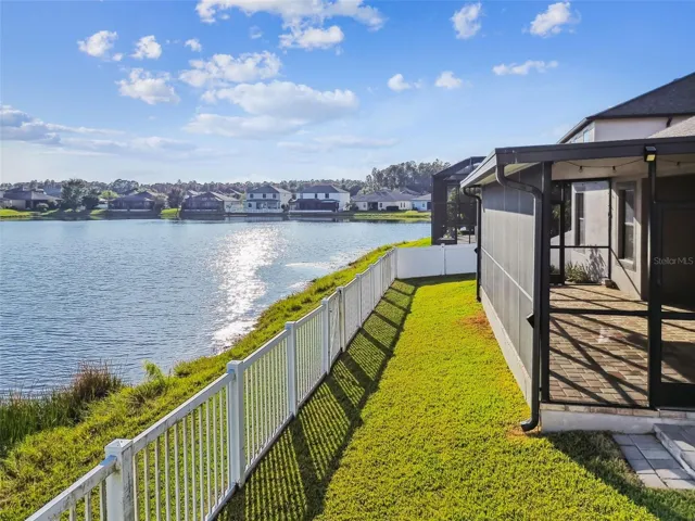 One or more photo(s) has been virtually staged. Welcome to this beautifully maintained 4 bedroom, 3 bath home in the heart of Trinity, offering a spacious triple split floor plan and stunning panoramic lake views. Located on a quiet street with fresh landscaping and exceptional curb appeal, this property features a wide lot, a covered front porch, and a desirable 3 car garage. Inside, the open layout includes vaulted ceilings, a large formal living/dining area, and flexible space perfect for an office or game room, along with a bright family room that flows into an open kitchen. A private guest wing offers two bedrooms, a full bath, and a spacious laundry room, while a separate guest suite with its own bath and lanai access provides ideal privacy for visitors or a home office. The oversized primary suite features vaulted ceilings, large windows, a walk-in closet, and a well appointed bath with a soaking tub, walk in shower, and water closet. Outdoors, the covered and extended paver lanai delivers true Florida living with relaxing lake views and excellent privacy thanks to thoughtful hedging and placement. Fresh interior paint, new carpet, hurricane shutters, and a move in ready feel complete this exceptional home.(ROOF-2015)(A/C-2015)(W/H-2025)