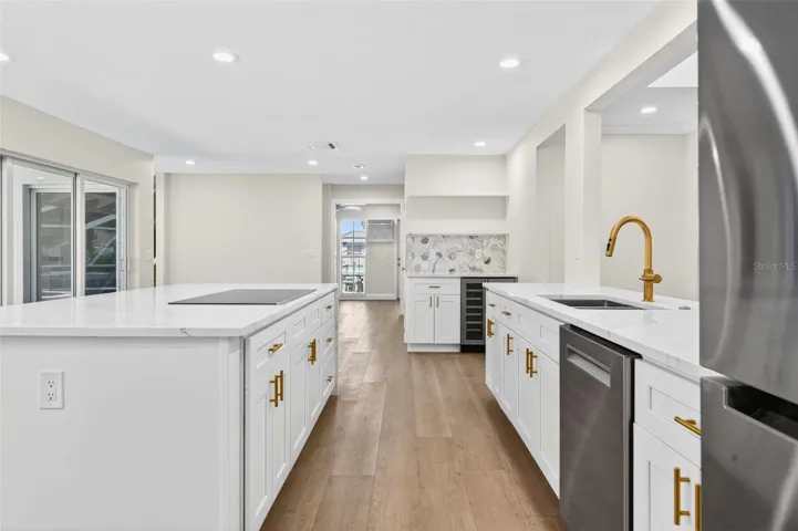 Boater’s Dream on Siesta Key! Experience the ultimate waterfront lifestyle in this beautifully renovated Siesta Key home, offering an extraordinary 268 feet of waterfront and immediate access to the Intracoastal Waterway. No bridges to the bay. This is truly a boater’s paradise, complete with a private dock featuring two lifts, perfect for accommodating your vessels and exploring the surrounding waters, from a quick cruise to Skiers Island for water sports, to sunset sails on the Gulf of Mexico. Recently and thoughtfully renovated, this stunning coastal residence perfectly blends timeless design with modern luxury. Boasting five spacious bedrooms, four and a half bathrooms, and 4,201 square feet of refined living space, it offers the ideal setting for relaxed everyday living and effortless entertaining. All within a home designed to complement today’s vibrant family lifestyle. Step inside to discover a light-filled, open floor plan framed by tranquil water views. New flooring and stylish fixtures create a crisp, inviting ambiance. The kitchen blends form and function with stainless steel appliances, custom cabinetry, quartz countertops, and a spacious island ideal for gathering with family and friends. The primary suite is a serene retreat featuring a spa-inspired bath and direct access to the pool terrace. Outdoor living shines with multiple spaces for lounging and dining beside the pool or enjoying the expansive waterfront lawn. Located on the north end of Siesta Key, just minutes off the island via the North Bridge and close to Siesta Key Village and the island’s world-famous white-sand beach. This property combines the best of island living and boating convenience, all in one exceptional address.