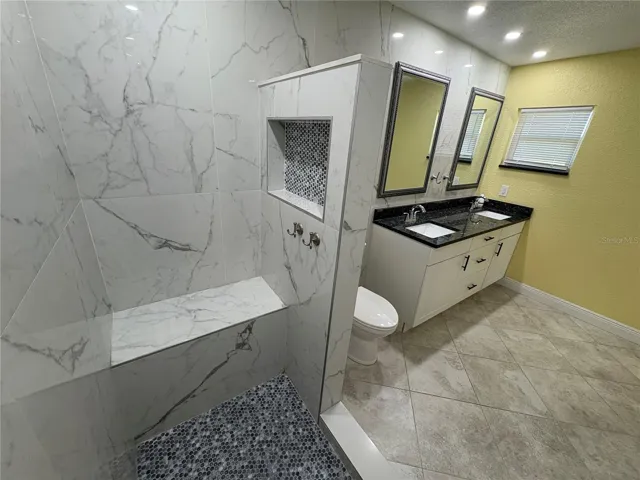 Welcome to your new beautifully landscaped, private saltwater pool home – 1117 Angela Maria Rd; conveniently located in unincorporated Manatee County in a quiet Sarasota neighborhood. This spacious 3-bedroom, 2-bathroom home offers 1,782 square feet of living space on an oversized .32-acre lot. The open floorplan includes a living room/dining room combo, a large family room, and a master bedroom suite with an ensuite bath. The master bedroom features a private sliding glass door entrance out to the patio/pool. A recent renovation also features an additional bonus room that can be used as a bedroom or office, offering additional space. Beautiful tile floors throughout the home, vaulted ceilings, and recent updates have made this home move in ready! The kitchen features new appliances and granite countertops and has recently been remodeled. The outdoor amenities include a beautiful saltwater pool, situated underneath a screened in patio, and lead to a private fenced in backyard and a private garden. This home has many upgrades and updates that make it move in ready including storm windows/high impact windows, upgraded appliances, and with no HOA or deed restrictions, you can enjoy the property as you like! Located in the Winter Gardens subdivision, this home is minutes from the Sarasota Bradenton International Airport, beaches, shopping, and dining! This is a one in a lifetime find!