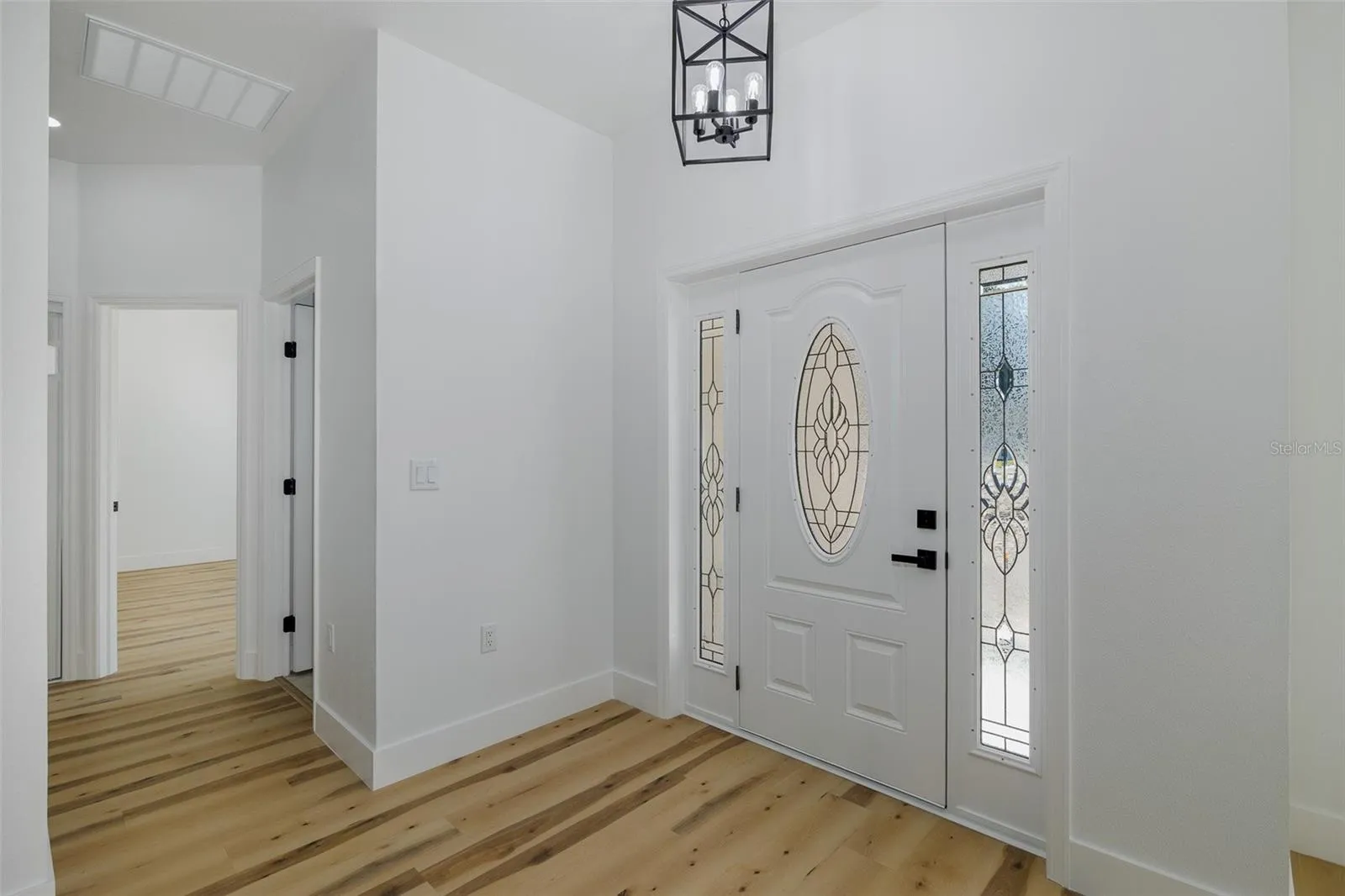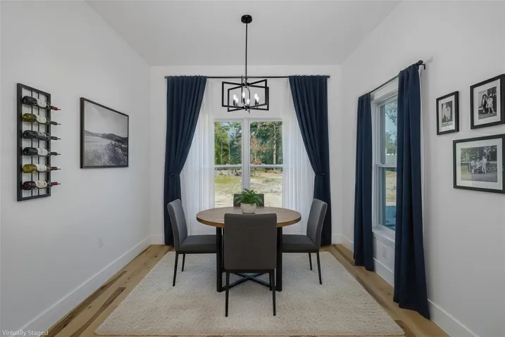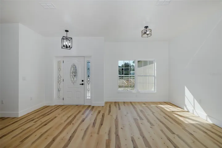 One or more photo(s) has been virtually staged. PRICED TO SELL!!!!!!! Royal Highlands Weeki Wachee location right off of SR-50. New Construction move in ready. 4 bedroom 2 bath home with wood floors throughout this new home.This builder did not miss anything with luxury and detail. Split floor plan with a very private primary bedroom.The bathroom is very elegant with beautiful tile, dual sinks and lighted mirrors. Huge walk-in closet. Grand living room with open concept leading to the guest rooms, dining room and kitchen. Samsung appliances with Quarts counter tops and bar seating.The other 3 bedrooms are on the south side of the house with beautiful natural lighting. Laundry room has easy access from the primary and kitchen area. Backyard is absolutely spacious with wooded area, sprinklers,well and septic. Room for a Pool,Family events, dogs, gardening and of course the new trend of having chickens. No HOA,CDD, Deed Restrictions and NO FLOOD ZONE. Almost a 1/2 Acre.Samsung Appliances.